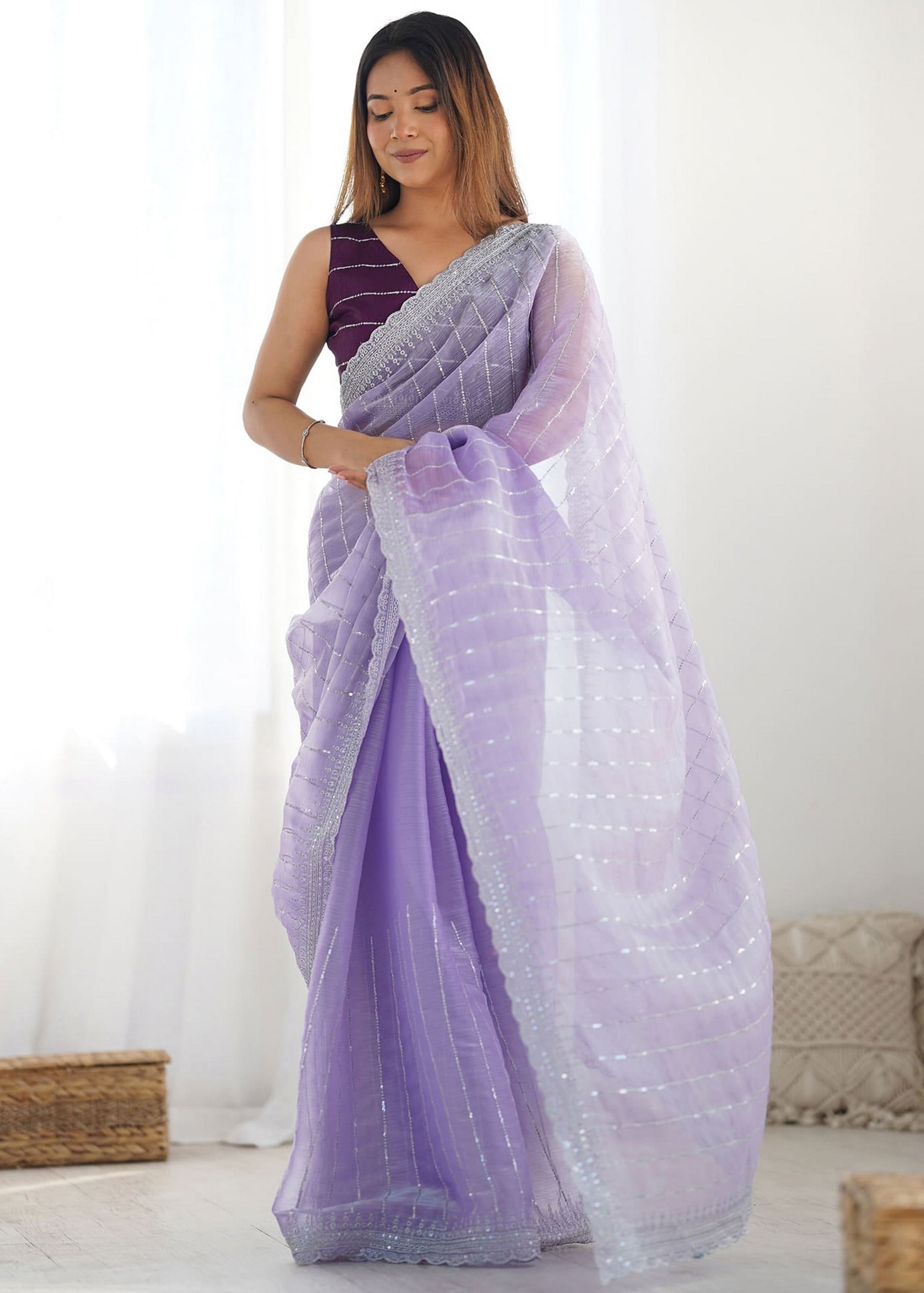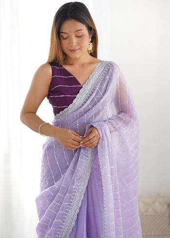Lavender Fancy Embroidery Work Jimmy Choo Girlie Bollywood Saree