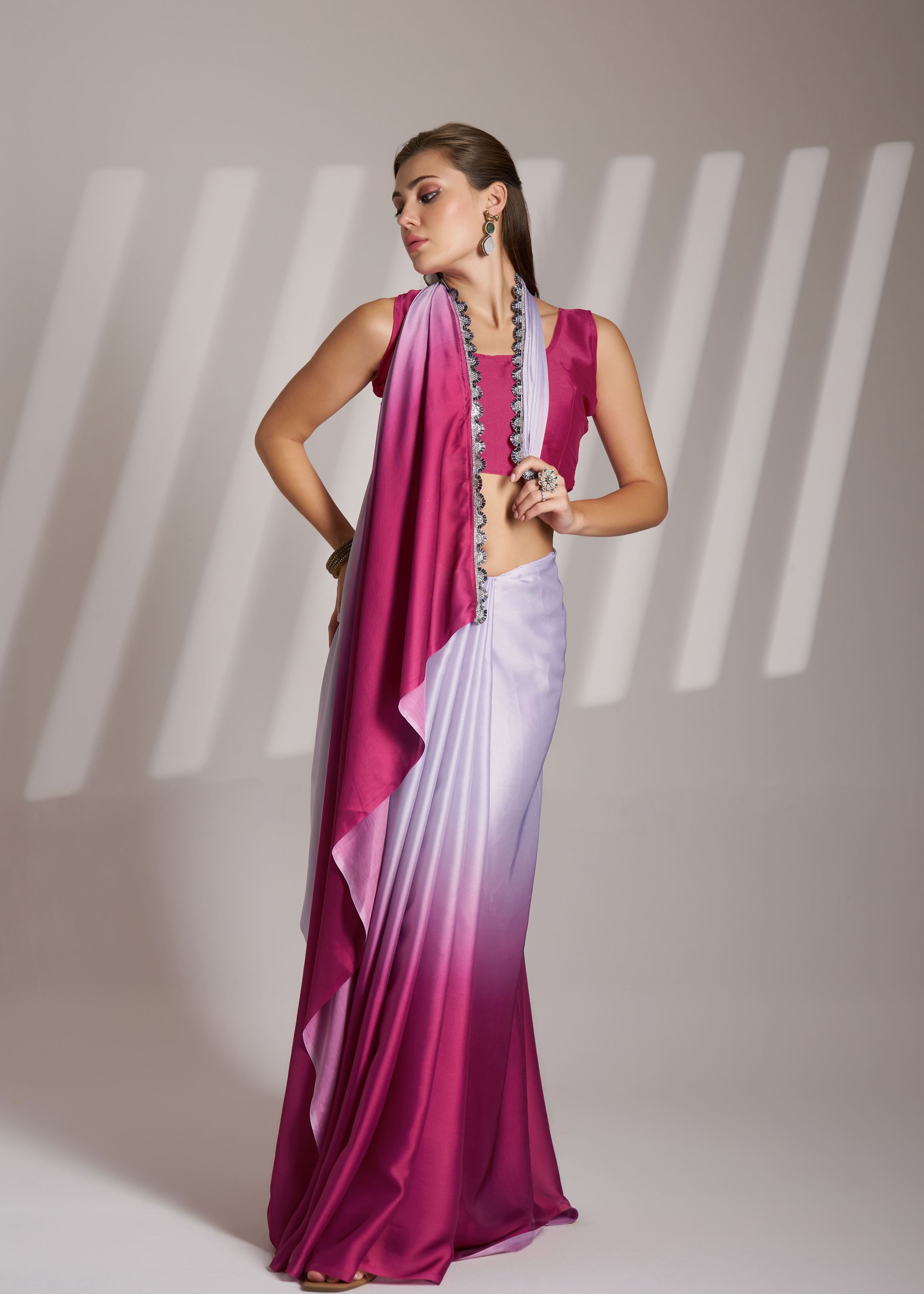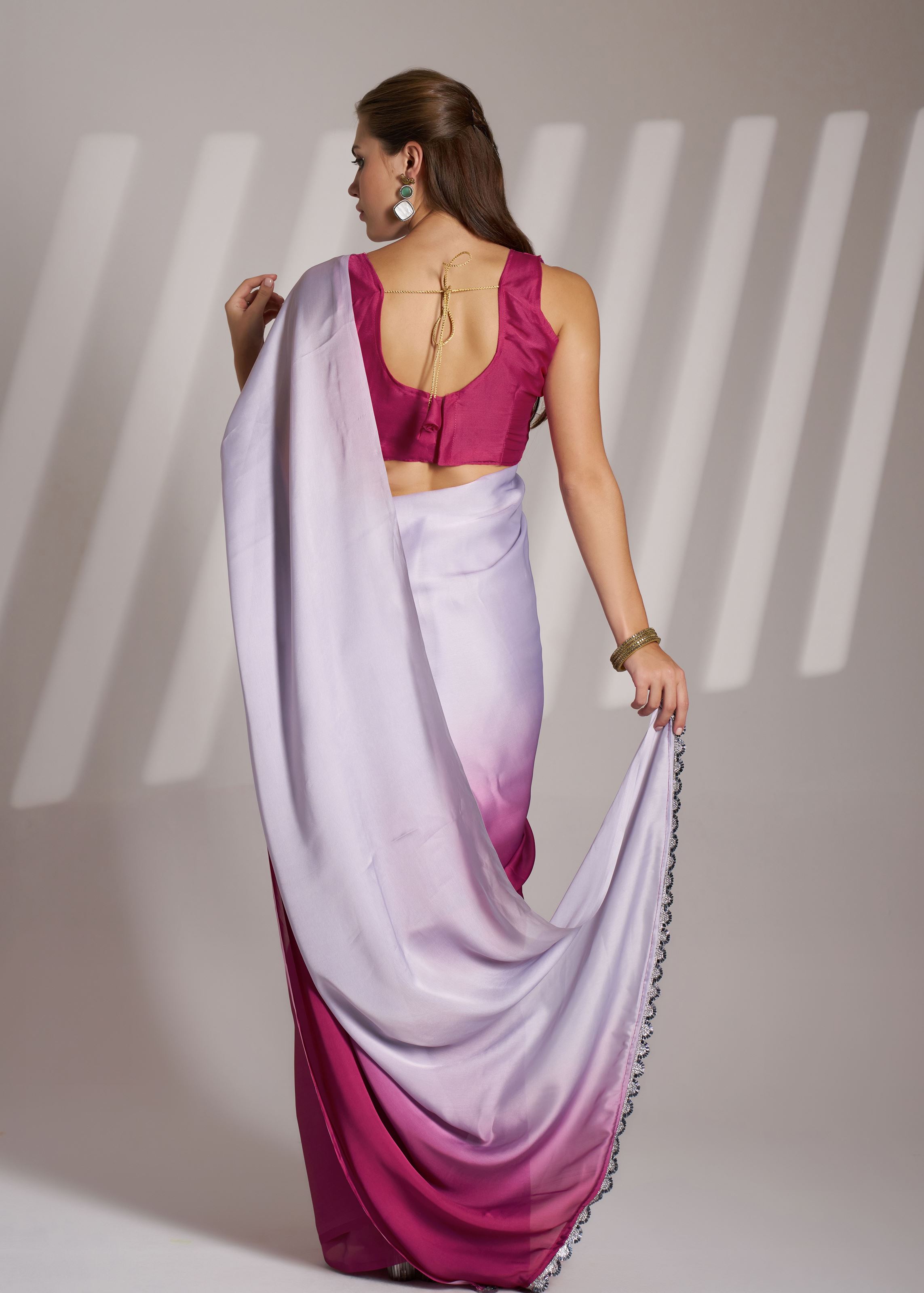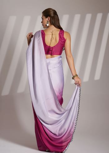 Lavender Glamorous Bollywood Style Solid Fancy Designer Chinon Saree