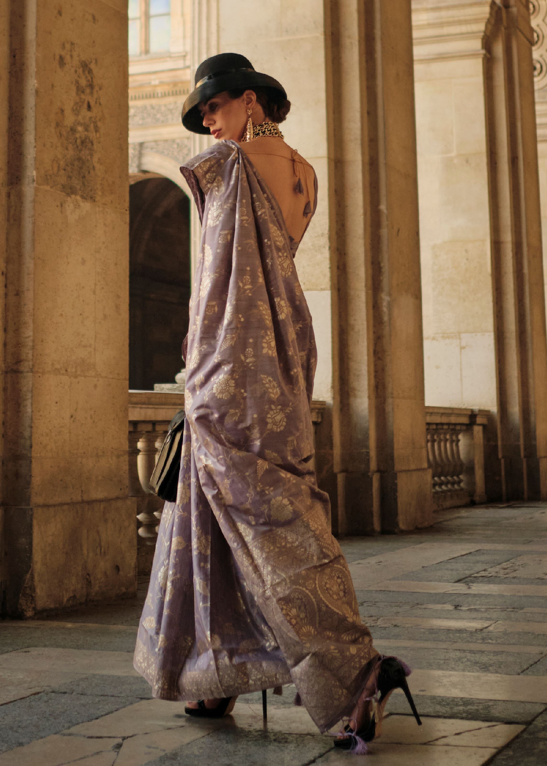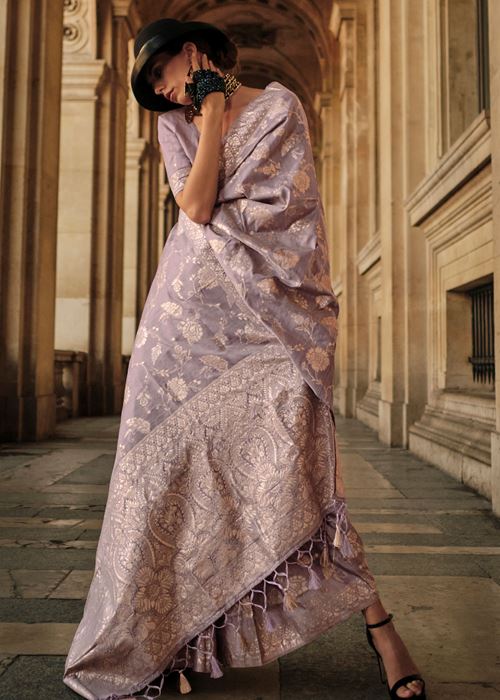 Lavender Gota Zari Weaving Silk Saree With Woven Work