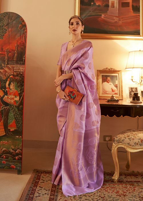 Lavender Handloom Silk Saree With Copper Zari Woven Work