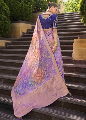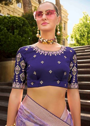 Lavender Jacquard Silk Woven Saree With Embroidered Blouse