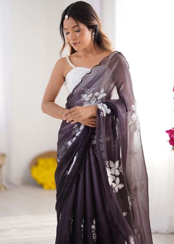 Lavender Jimmy Choo Designer Dual Sequence Embroidery Work Beautiful Partywear Saree