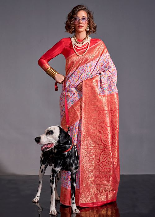 Lavender Kashmiri Silk Saree With Kashmiri Chaap Jacquard Woven Work