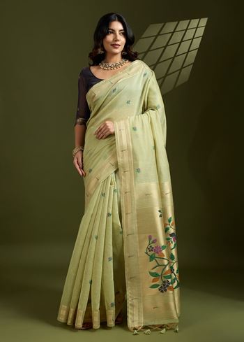 Radiate elegance and poise in Aethnofit Fashions’ Lavender Muga Cotton Saree, a graceful fusion of traditional artistry and refined design. Woven in soft Muga cotton, this saree features dainty flower buttis across the body and a rich, contrasting Paithani pallu—making it a timeless addition to any ethnic collection.