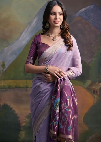 The soft lavender hue radiates calm sophistication, making it ideal for festive occasions, cultural events, or intimate gatherings. Delicate butti weaves are scattered across the body of the saree, adding subtle texture and an understated charm. The highlight of this piece is the beautifully woven peacock motif on the pallu, symbolizing grace and regal beauty. The intricate craftsmanship of the pallu captures attention effortlessly, creating a statement look with every drape.