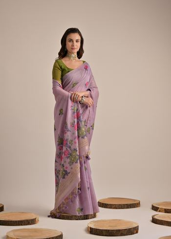 Elegant, breathable, and rich in detail, the Lavender Muga Cotton Saree with Thread Woven Flower Design is a timeless piece for women who appreciate subtle sophistication and cultural depth in their wardrobe. Ideal for festive mornings, temple visits, or casual functions—this saree is a graceful celebration of craft and comfort.