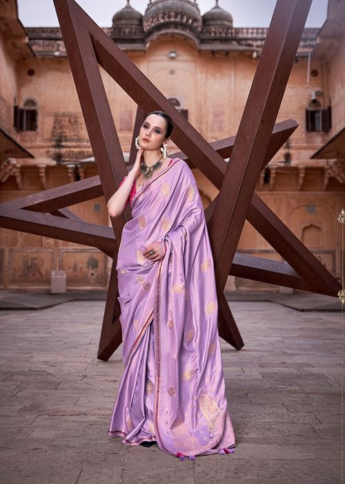 Lavender Pure Satin Silk Saree With Woven Zari Work