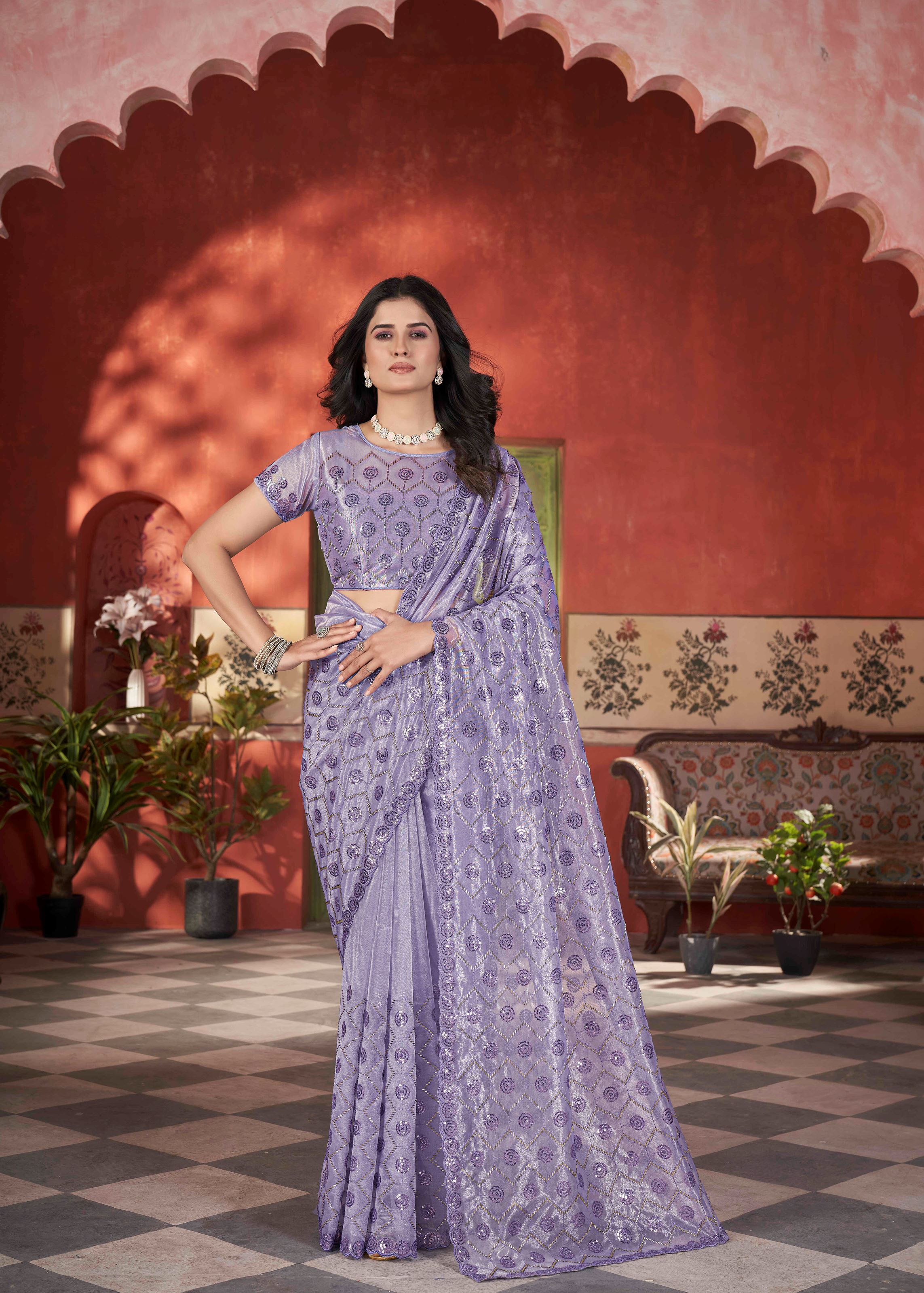 Step into elegance with this stunning Lavender Tissue Net Glamorous Partywear Bollywood Saree from Aethnofit Fashions, crafted to perfection for women who adore timeless ethnic fashion. Designed in delicate tissue net fabric, the saree radiates a soft lavender charm, while the matching blouse in tissue fabric is beautifully embroidered, adding a rich designer touch. This partywear saree effortlessly combines glamour with comfort, making it a must-have for weddings, receptions, festive occasions, and Bollywood-inspired events.