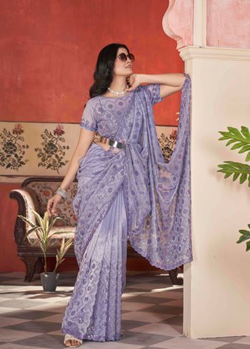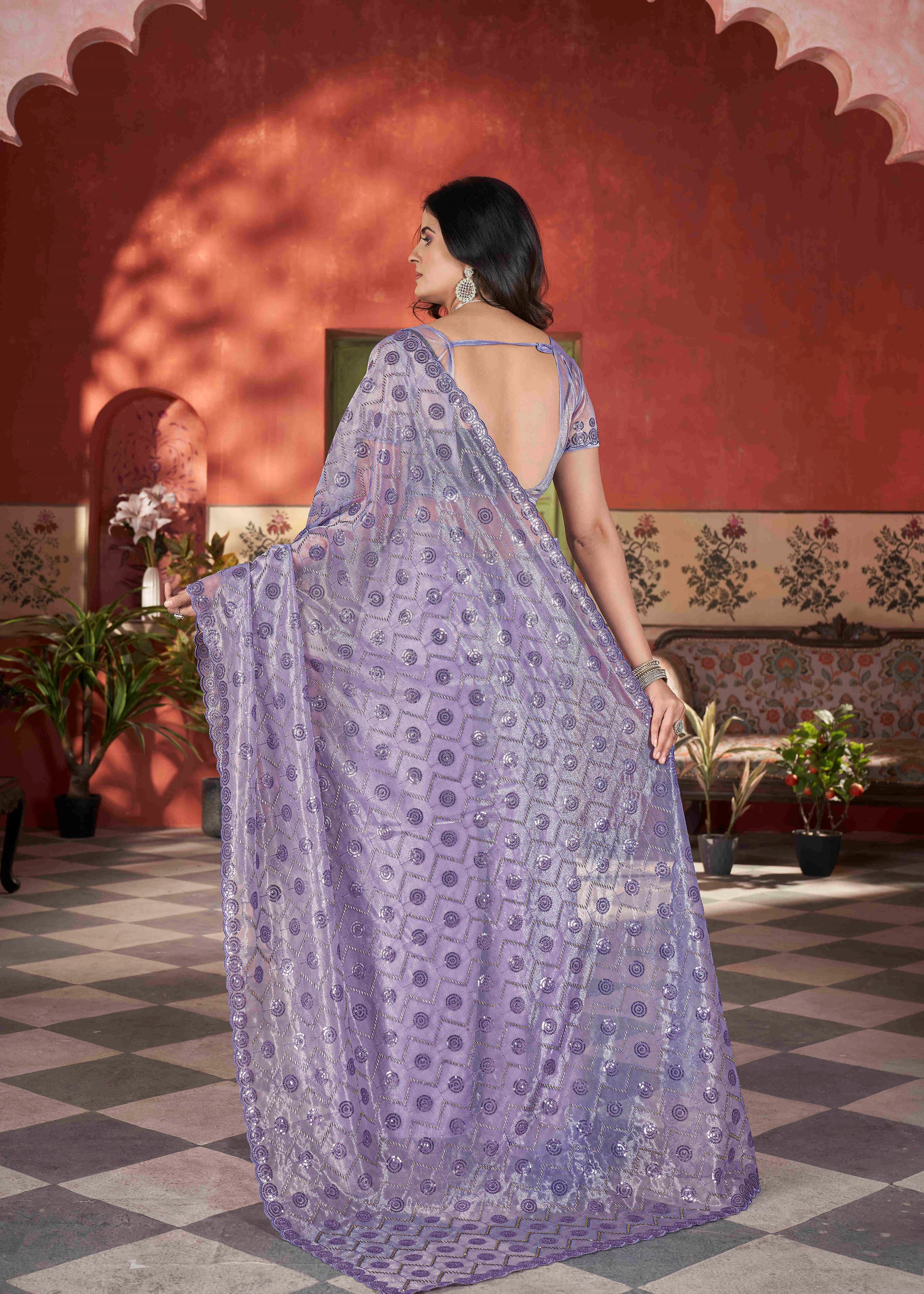 Lavender Tissue Net Glamorous Partywear Bollywood Saree