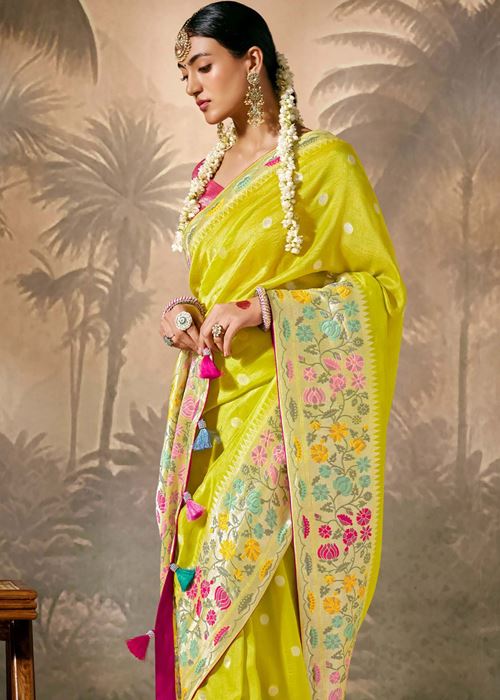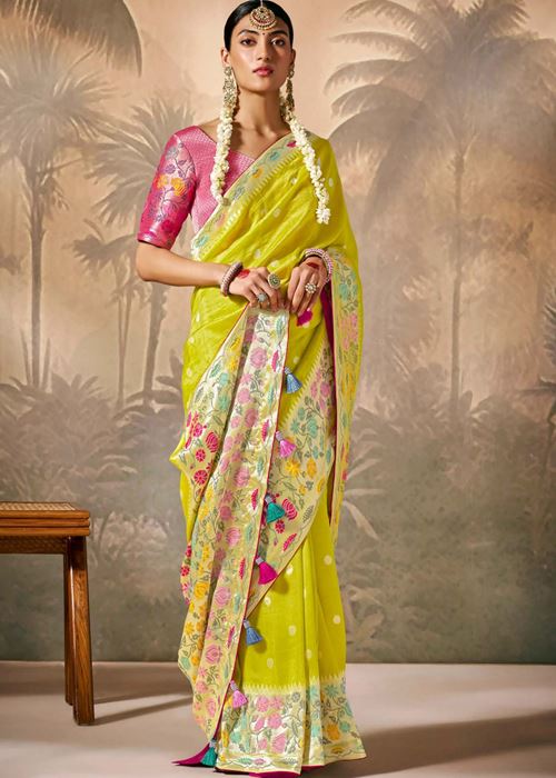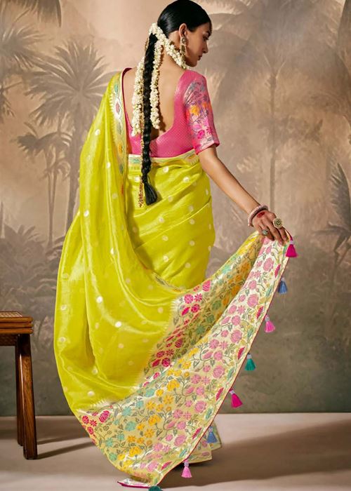 Lemon Silk Saree With Jacquard Woven
