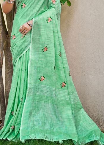 Step into timeless elegance with our Light Green Linen Saree, a graceful blend of traditional draping and modern minimalism. Crafted from pure linen, this saree offers an airy, natural texture that ensures both comfort and style for all-day wear.