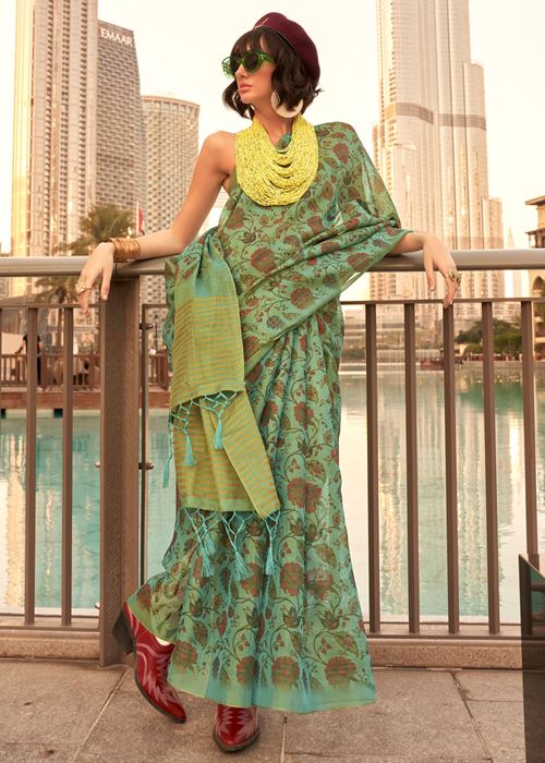 Light Green Tissue Silk Saree With Printed