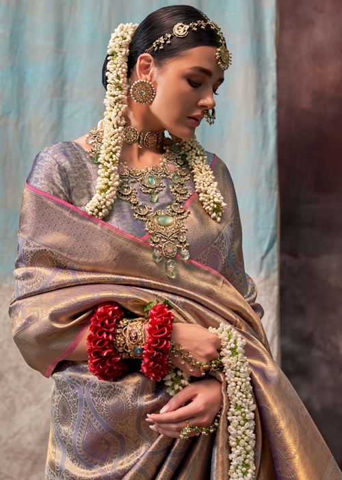 Light Lavender Handloom Silk Saree With Jacquard Woven Work