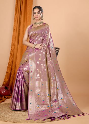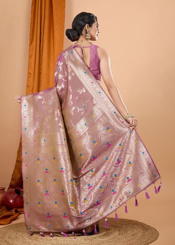 Light Pink Ethnic Banarasi Silk Saree With Woven Jari Designer Work