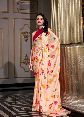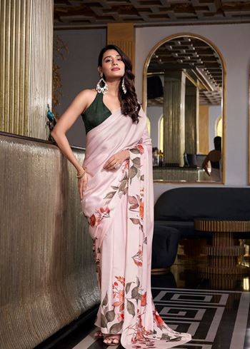 Light pink Printed Satin Silk Saree with Smooth Elegance