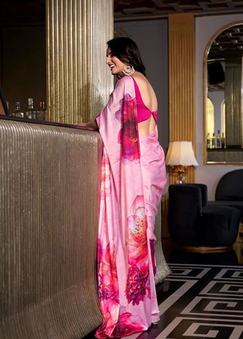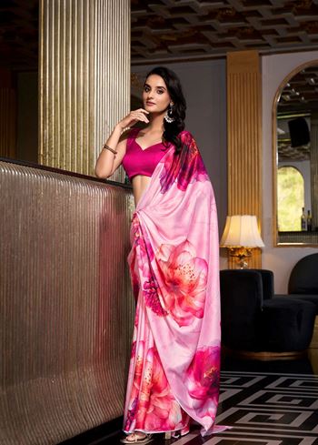 Light Pink Printed Satin Silk Saree with Smooth Elegance