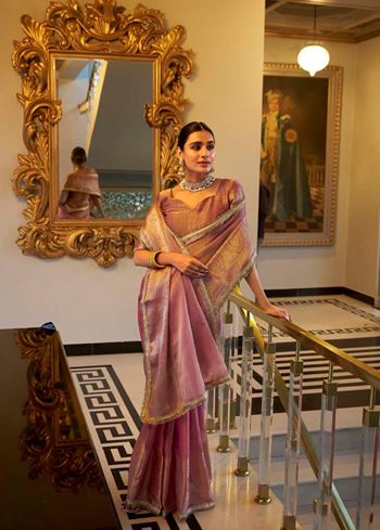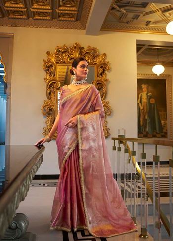 Light pink Tissue Shimmer Saree with Zari Weaving & Sequins Lace