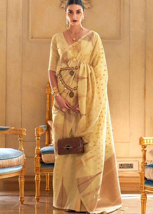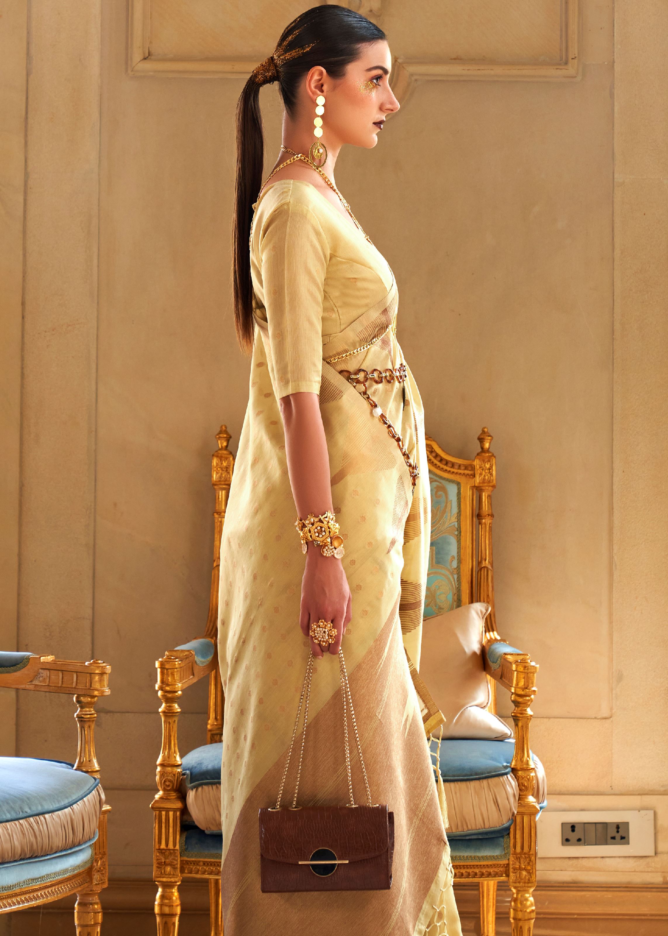 Light Yellow Tissue Saree With Jacquard Woven Work