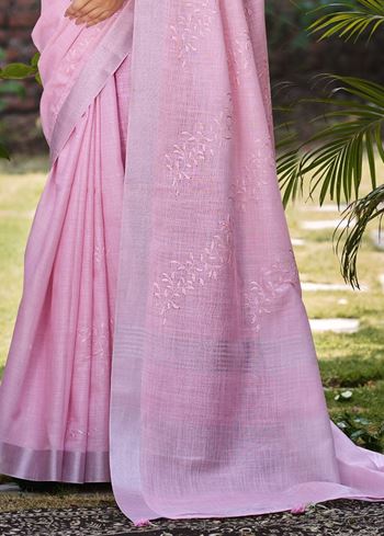 Paired with a matching dark pink linen blouse, this saree ensures a seamless and stylish look. Its lightweight and breathable fabric keeps you comfortable throughout the day while enhancing your graceful drape. Designed to combine traditional appeal with contemporary flair, it is perfect for women who value timeless ethnic fashion.