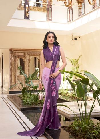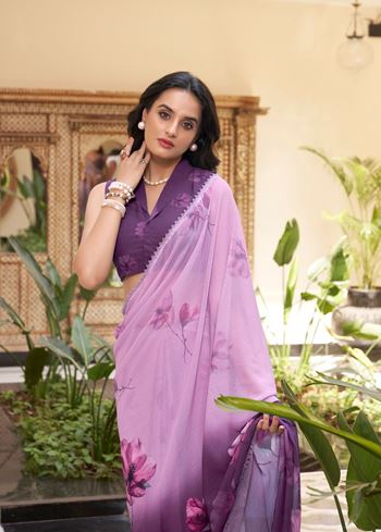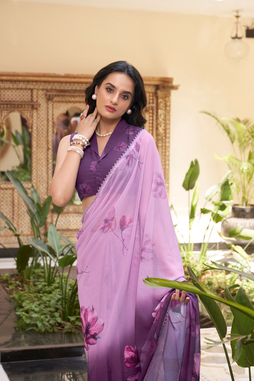 Grace your wardrobe with the soft charm of our Lavender Floral Marble Saree, crafted from lightweight and breathable weightless marble fabric that offers an effortless, elegant drape. The soothing lavender hue is delicately enhanced with floral patterns, complemented perfectly by a refined lace border that adds a subtle touch of sophistication. Paired with a matching lavender blouse made from the same fabric, this saree is ideal for festive occasions, casual gatherings, or any event where understated elegance shines.