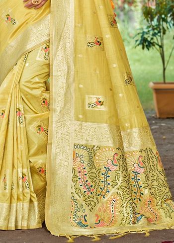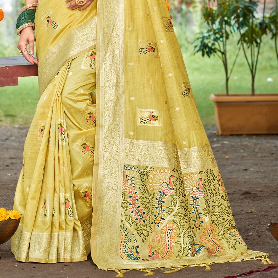 Luxurious Yellow Assam Silk Meenakari Festival Saree
