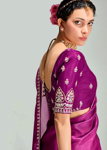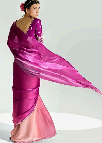 Magenta Pink Organza Saree with Embroidered Blouse
