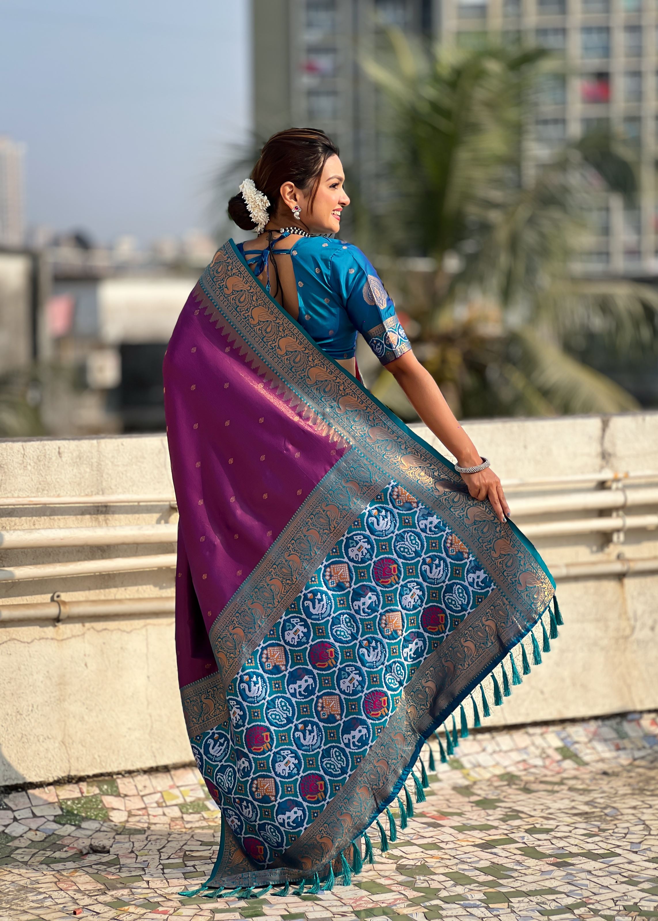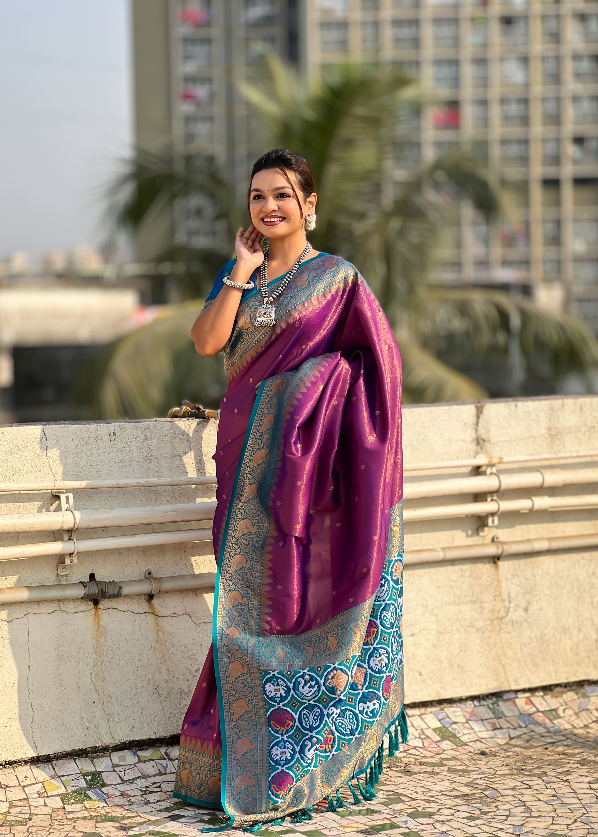 Magenta Jari Tissue Woven Meenakari Pallu Designer Heavy Ethnic Saree