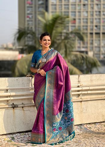 Celebrate the richness of Indian heritage with this Magenta Jari Tissue Woven Meenakari Pallu Designer Heavy Ethnic Saree, exclusively curated by Aethnofit Fashions. Crafted from premium tissue fabric, this saree reflects a perfect blend of tradition and luxury. The striking magenta hue radiates festive charm, while the contrasting blue blouse adds a bold and royal appeal, making it an ideal choice for weddings, receptions, and grand cultural occasions.