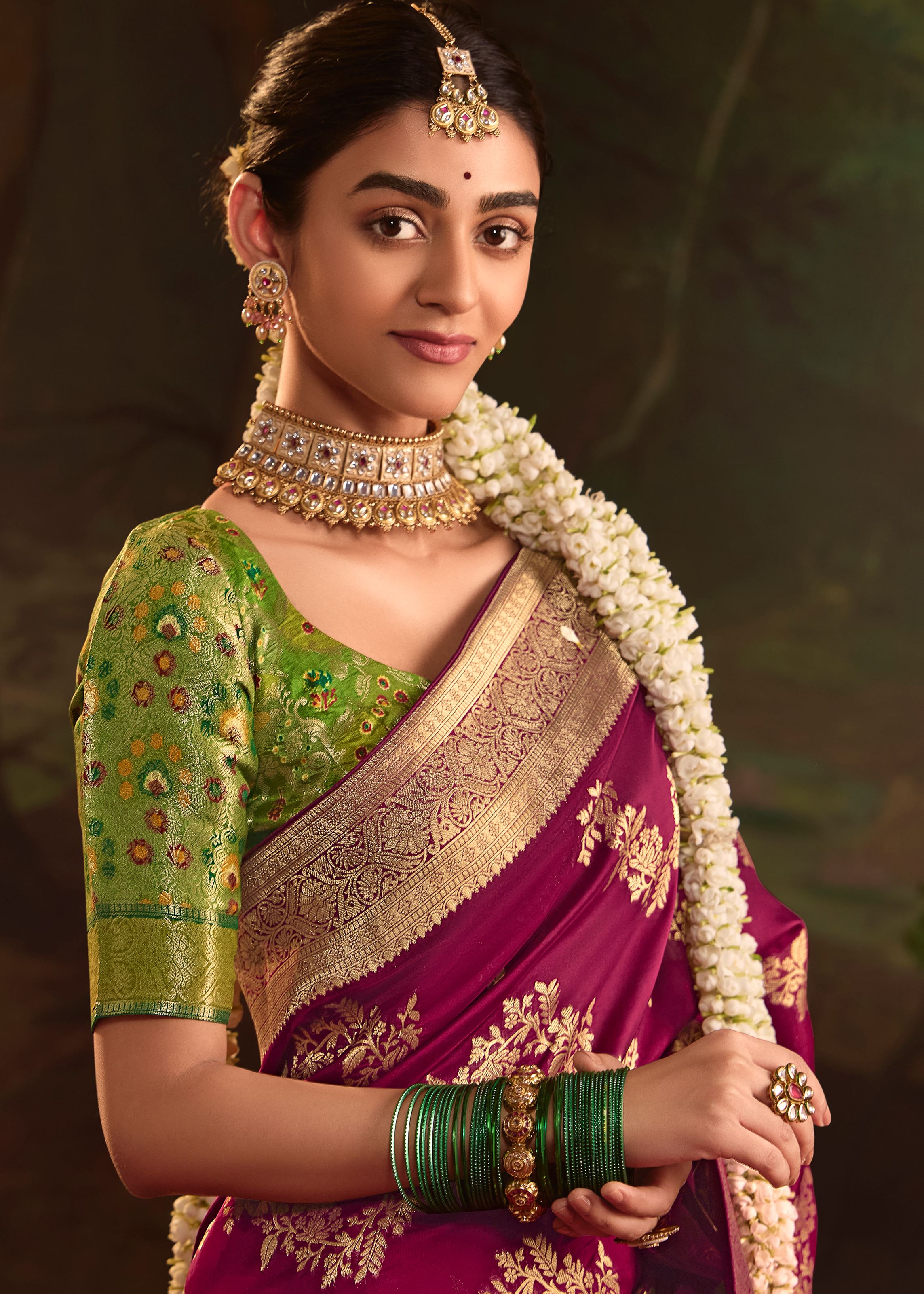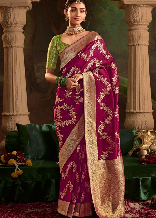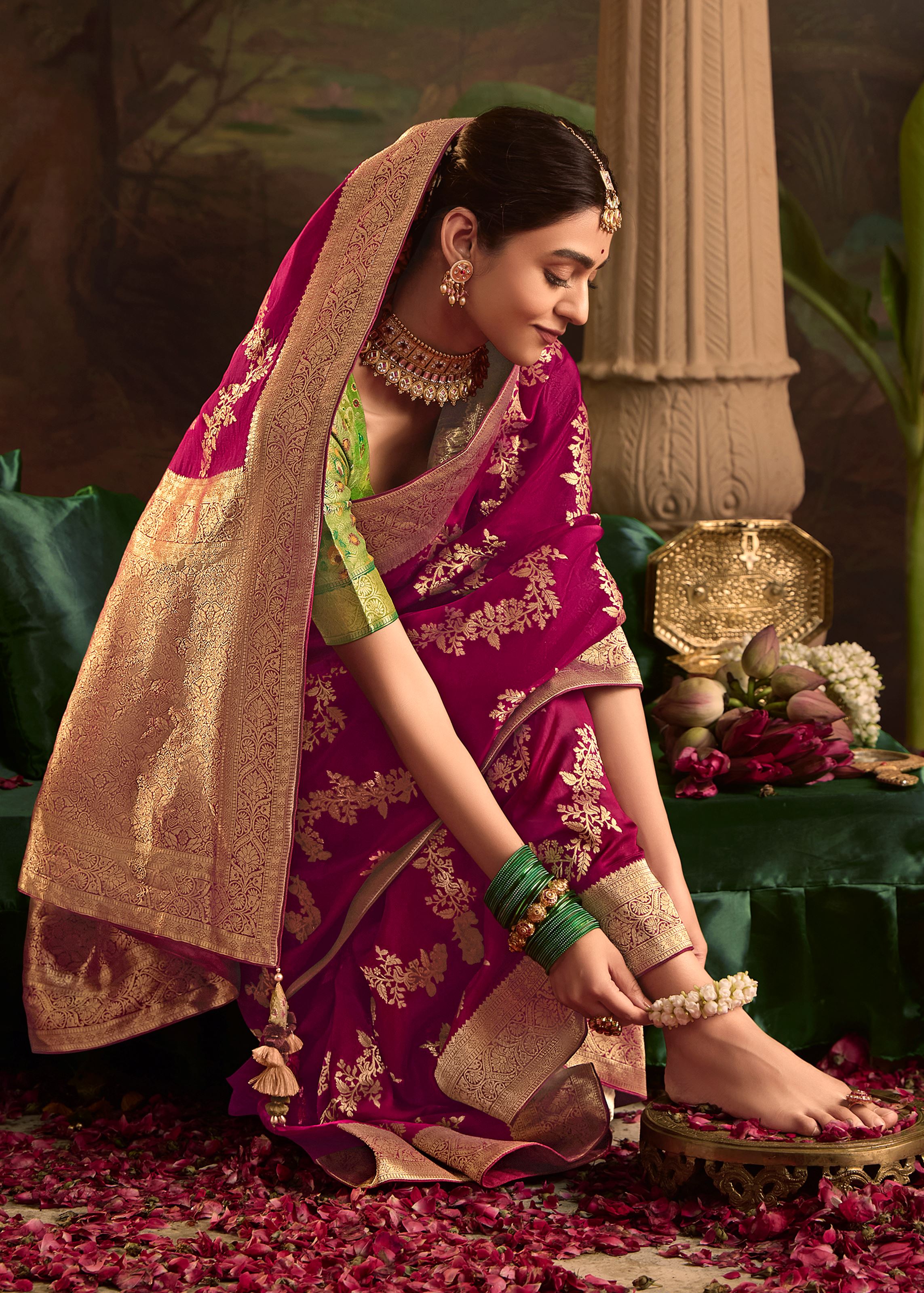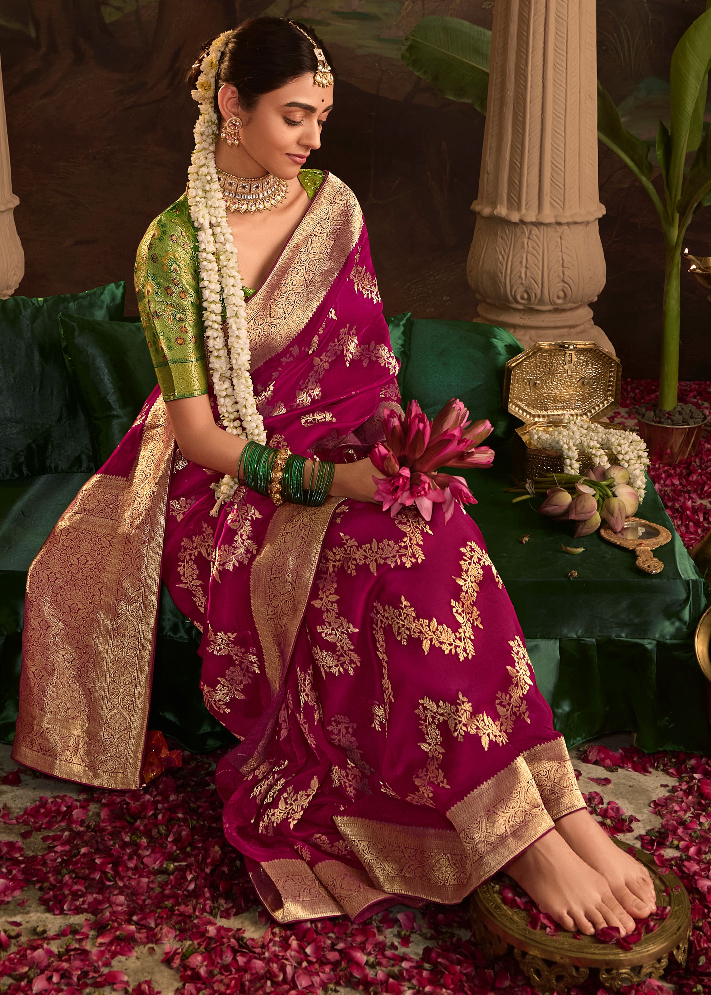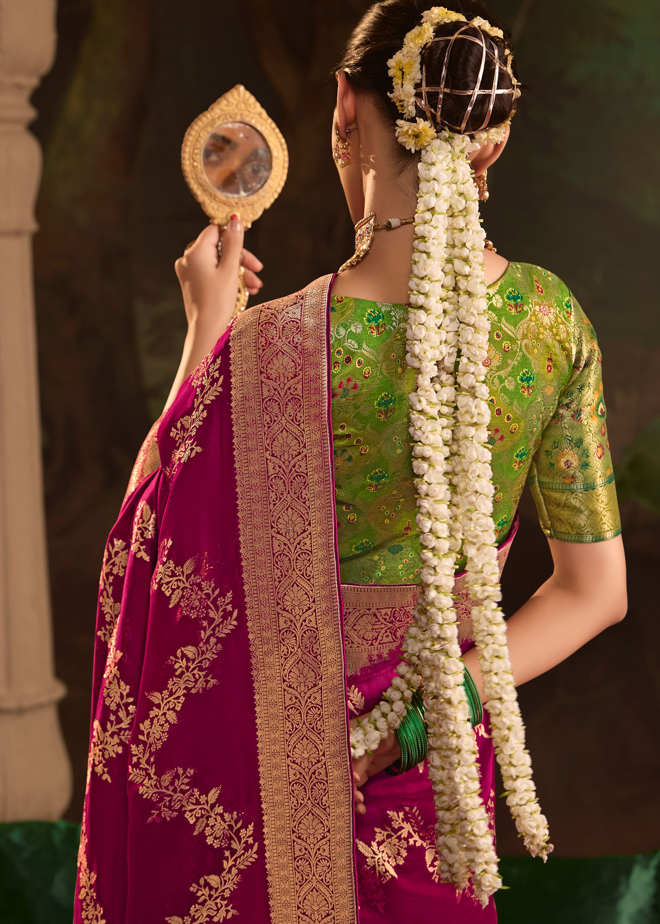 Magenta Pure Crepe Dola Silk Saree With Jacquard Woven Work