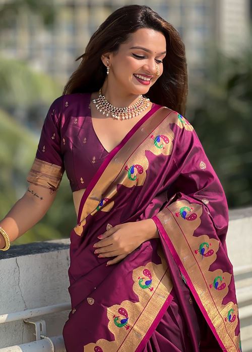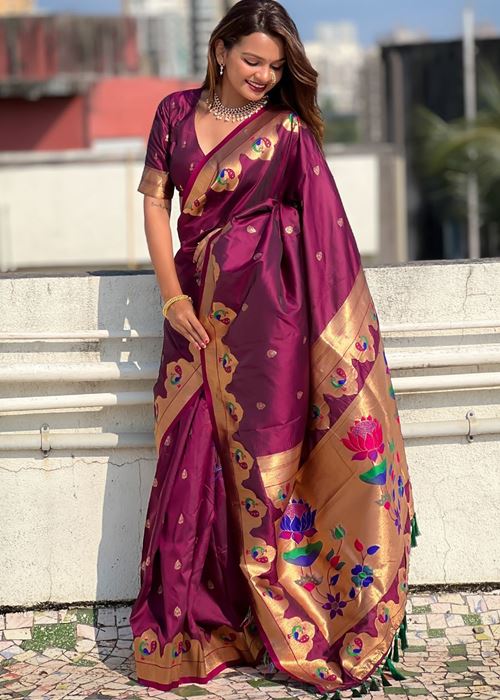 Magenta Silk Blend Paithani Saree