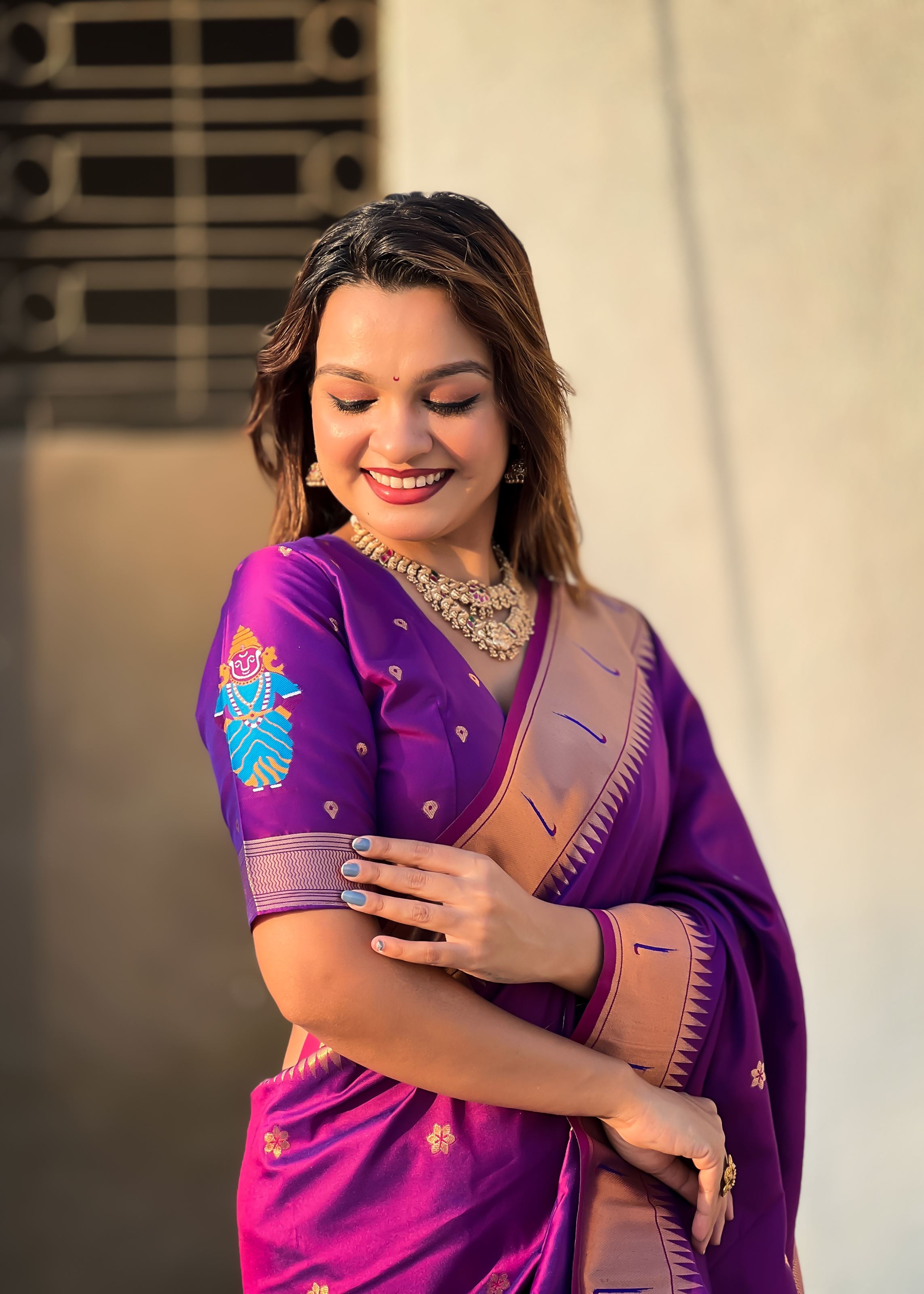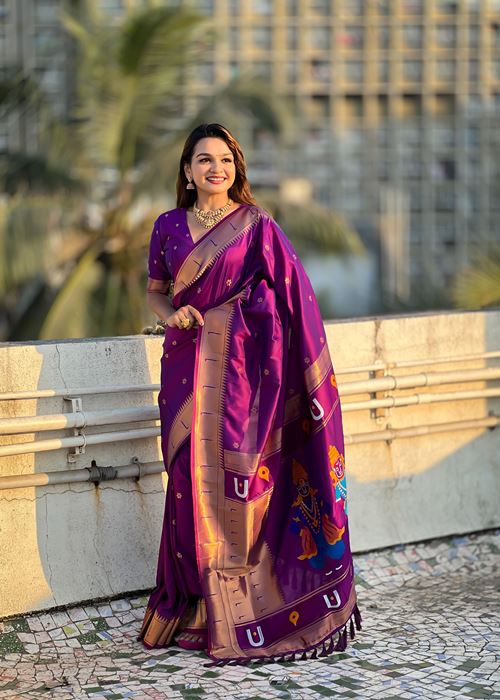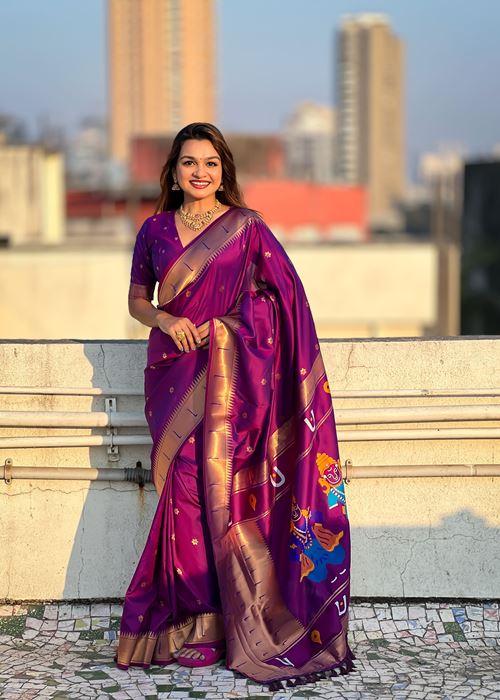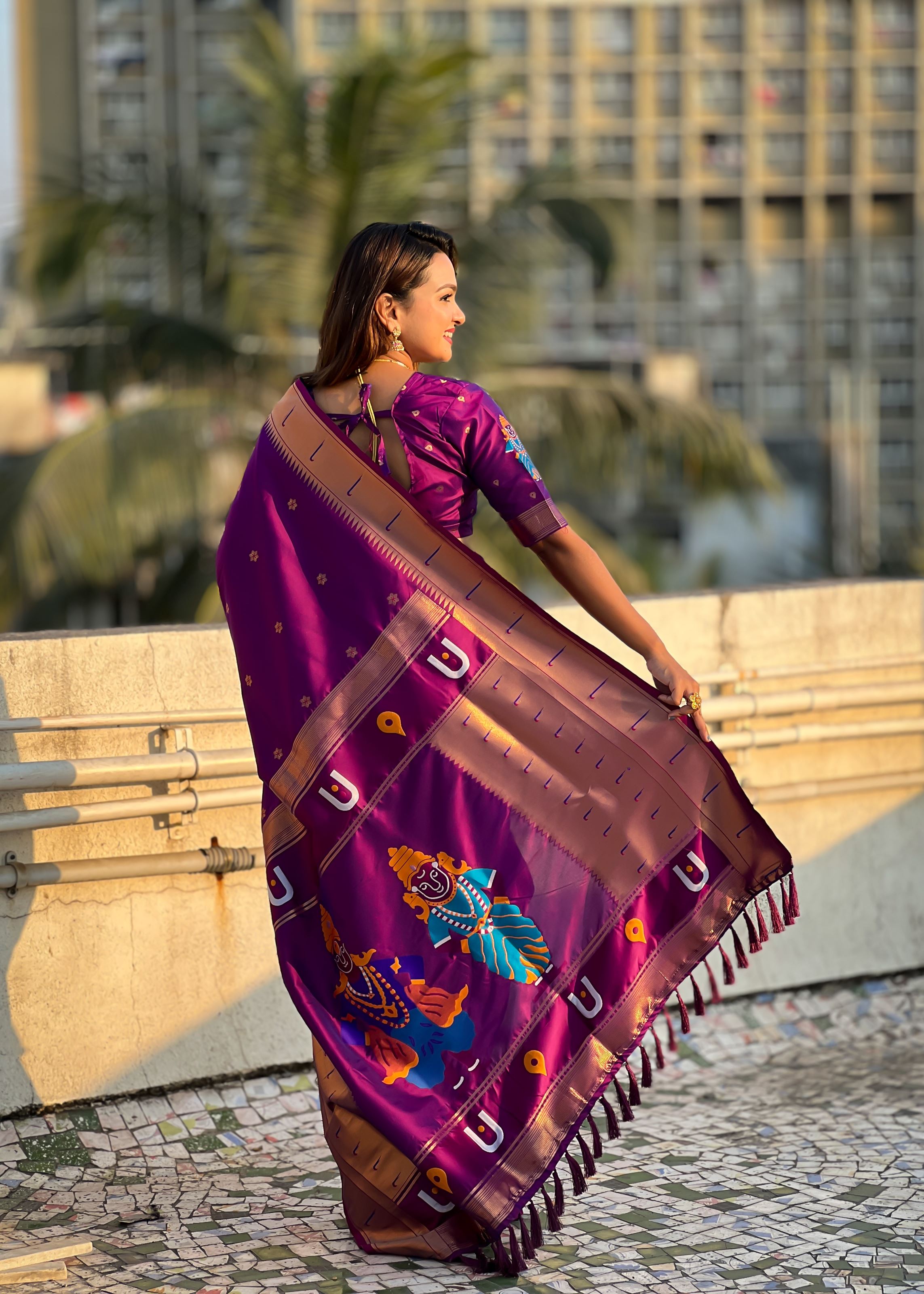 Magenta Silk Blend Vitthala God Paithani Silk Saree