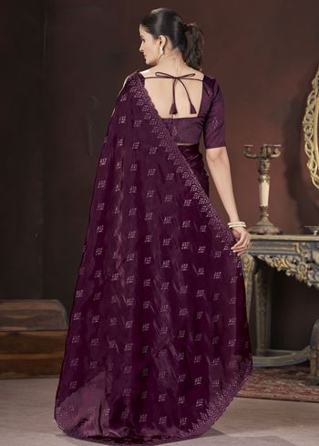 Magenta Stylish Jimmy Choo Ethnic Sequins Embroidered Saree