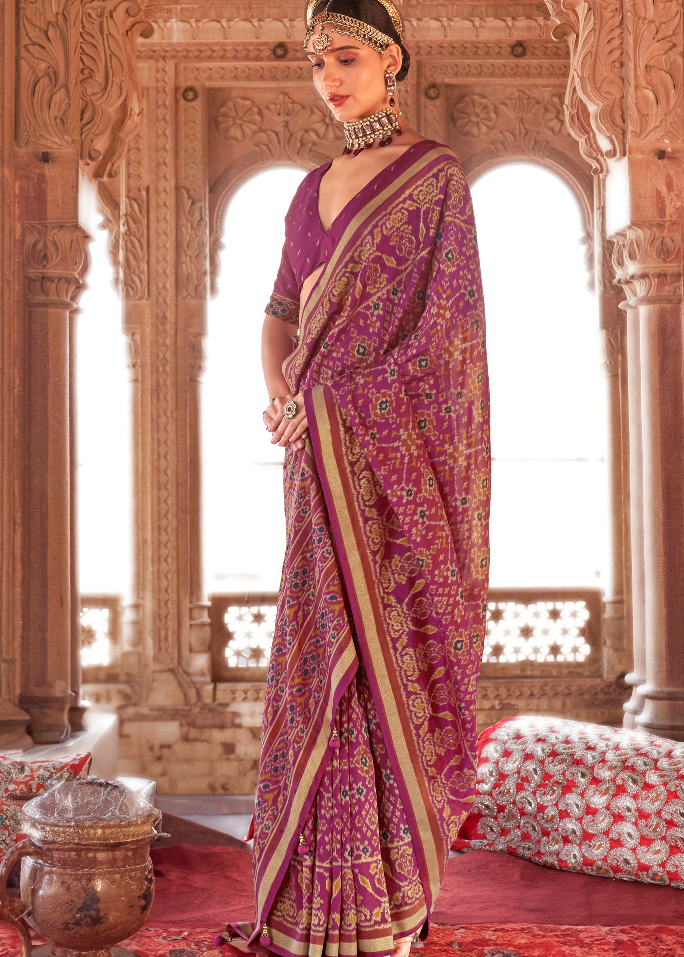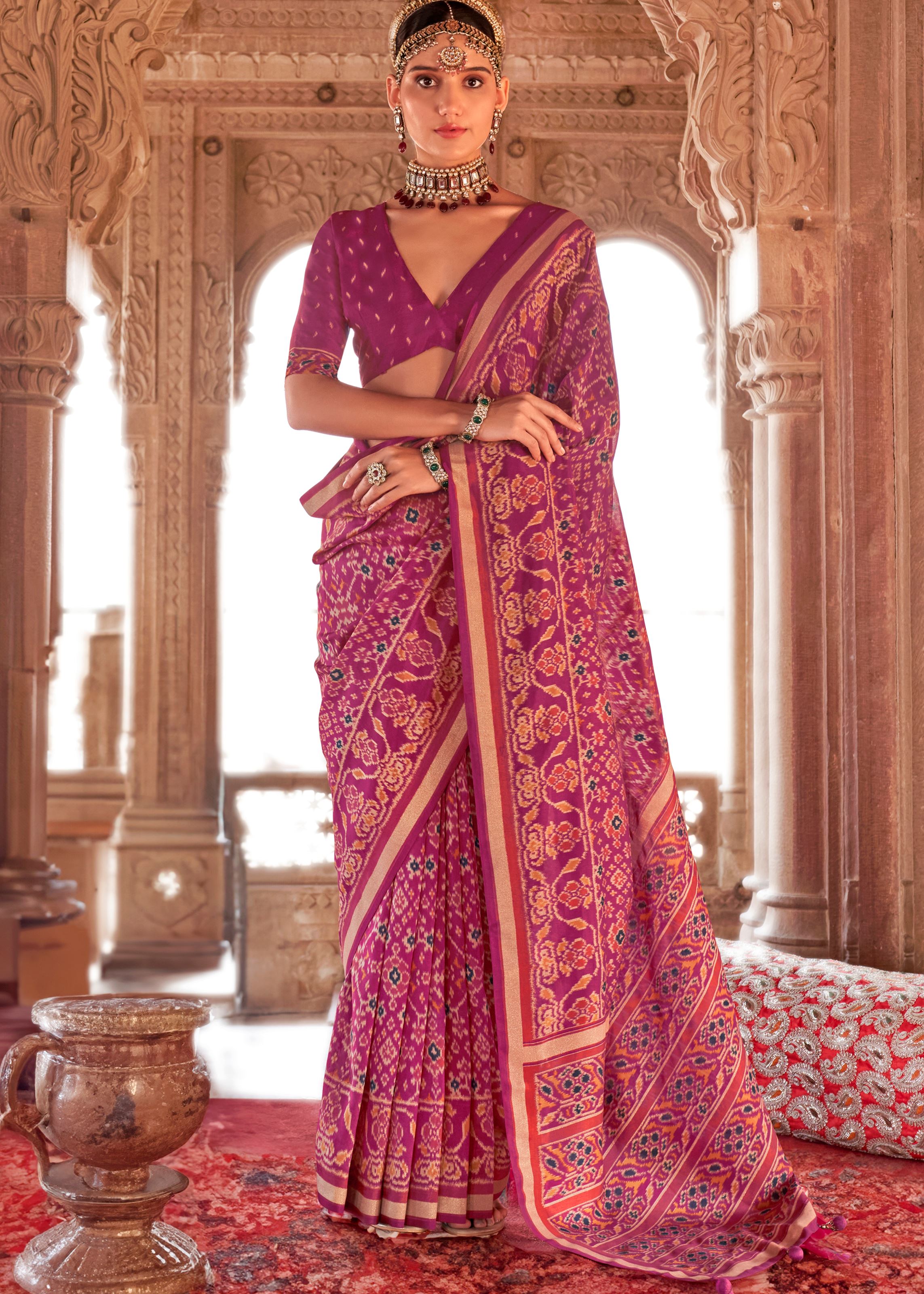 Magenta Super Georgette Saree With Patola Print
