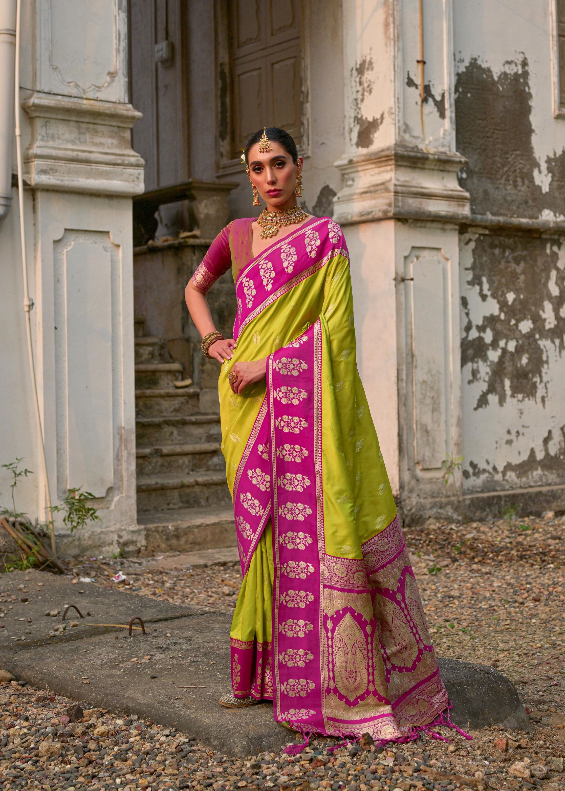 Mahendi Banarasi Silk Woven Jari Designer Heavy Rich Looks Ceremonial Saree