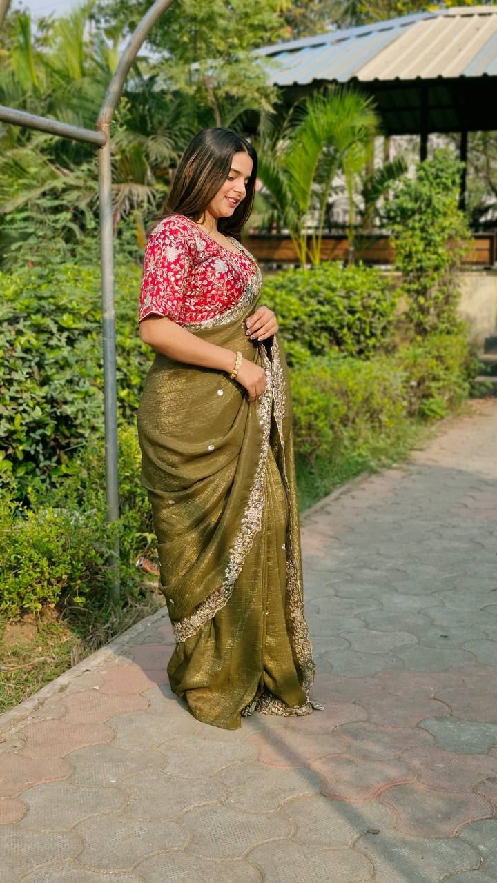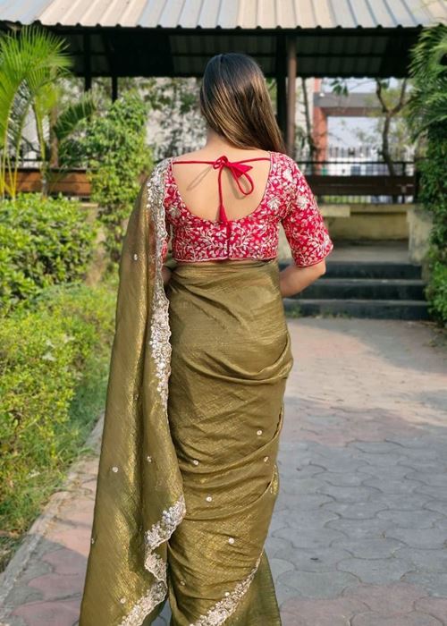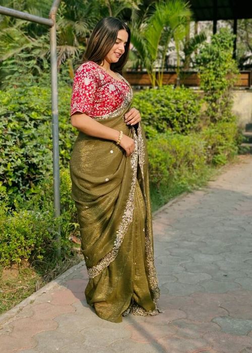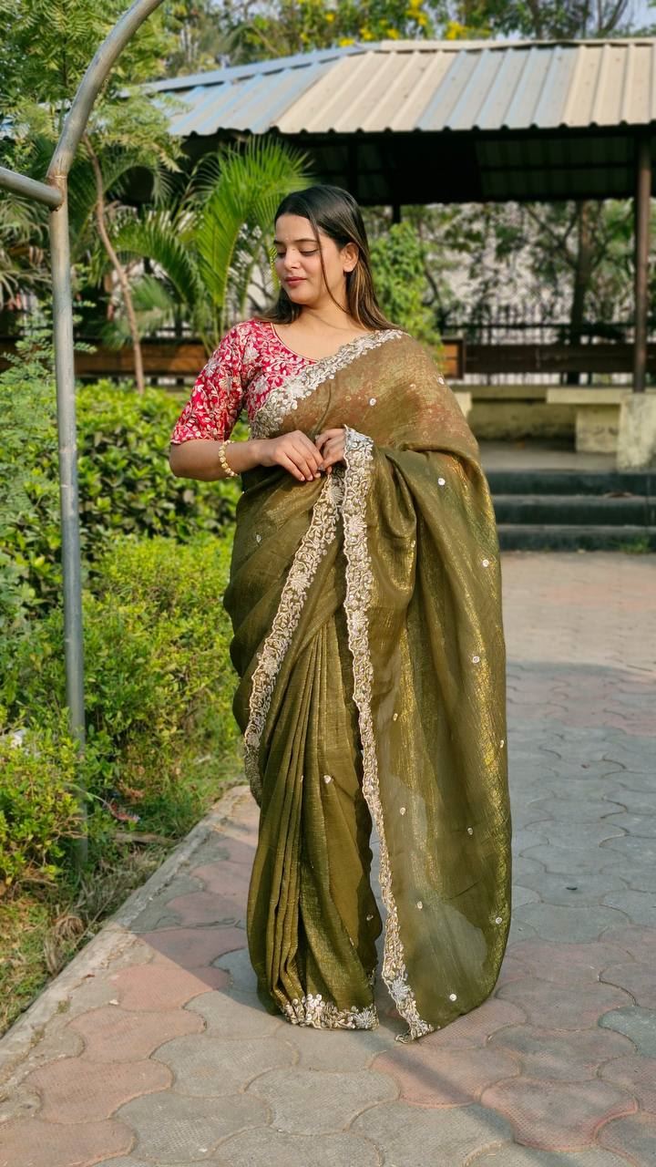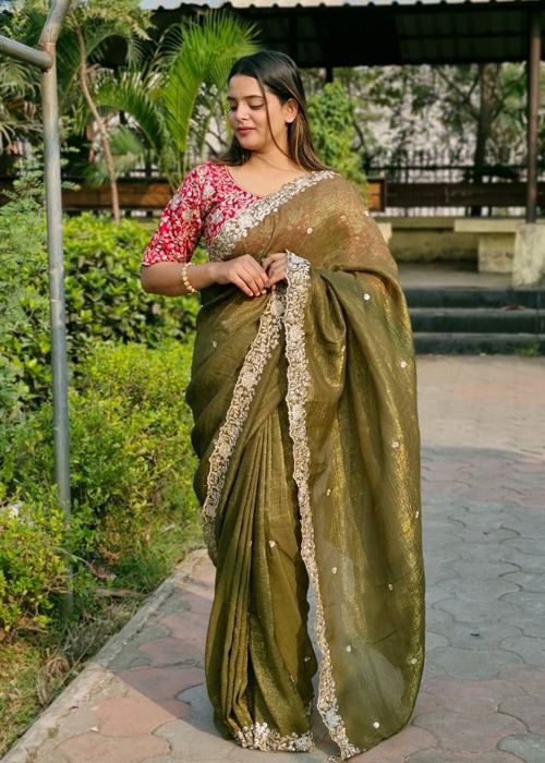 Mahendi Colour Candy Crush Silk Embroidery Work Saree