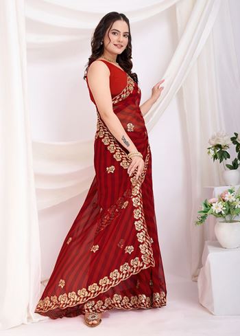 Maroon Georgette Sequins Designer Bollywood Saree