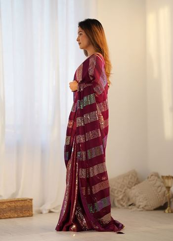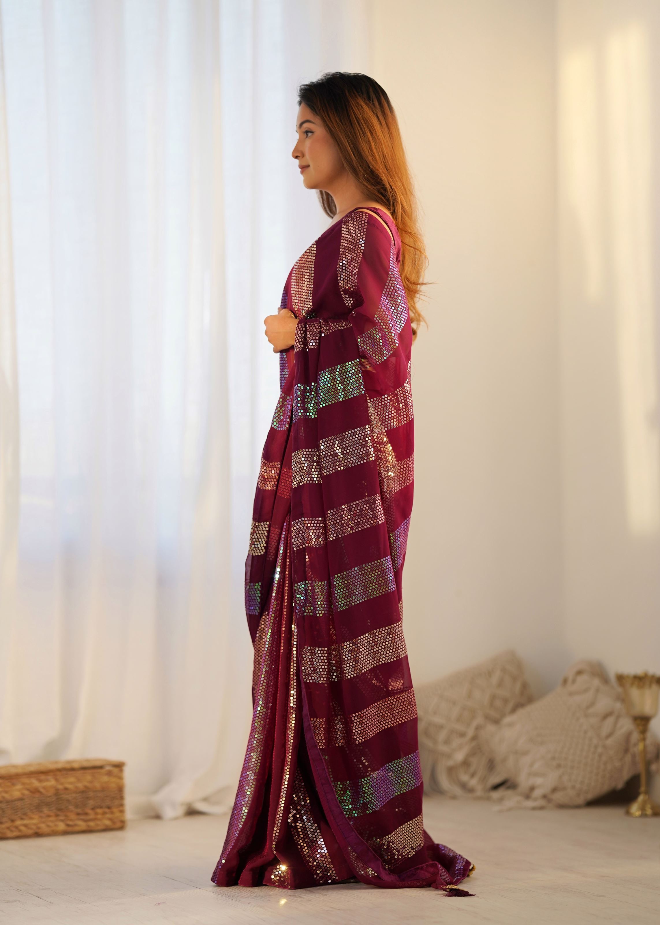 Maroon Glamorous Georgette Fabric Sequins Work Bollywood Looks Saree