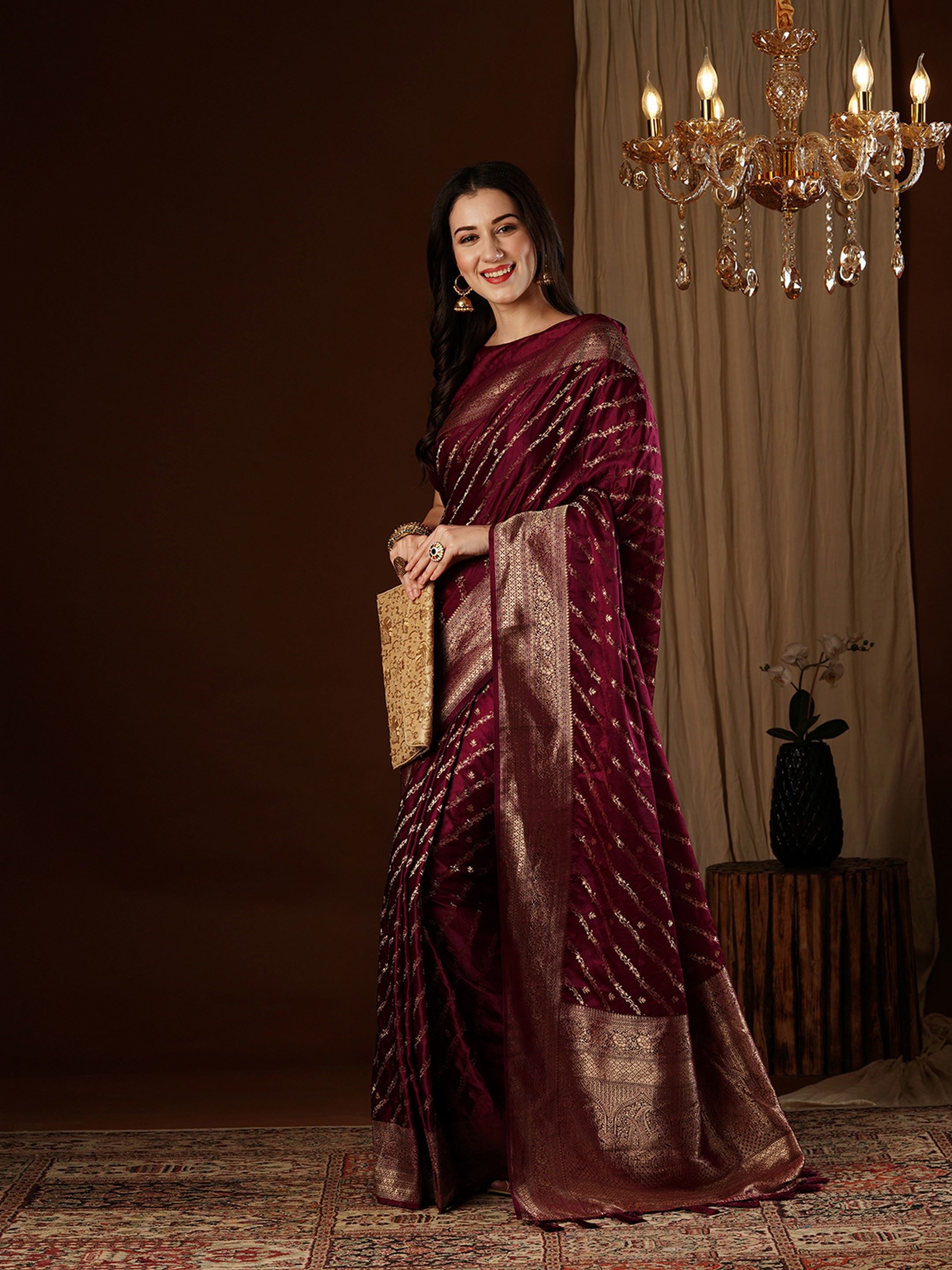 Maroon Glamorous Jacquard Designer Satin Silk Saree