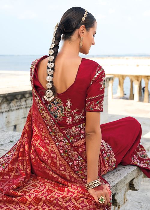 Maroon Saree With Heavy Embroidered Work
