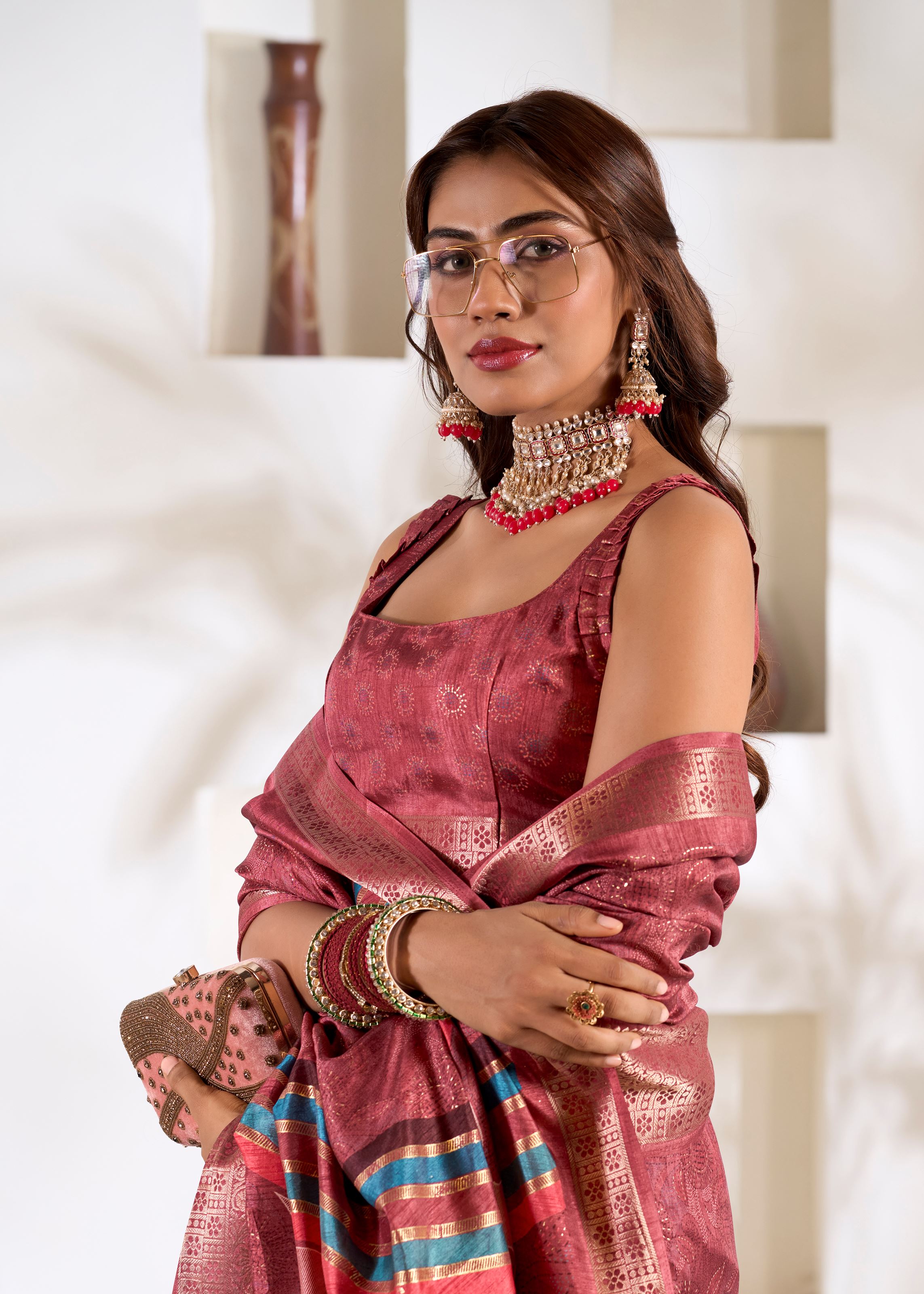 Maroon Soft Dola Silk Saree With Foil Print With Jacquard Woven Work