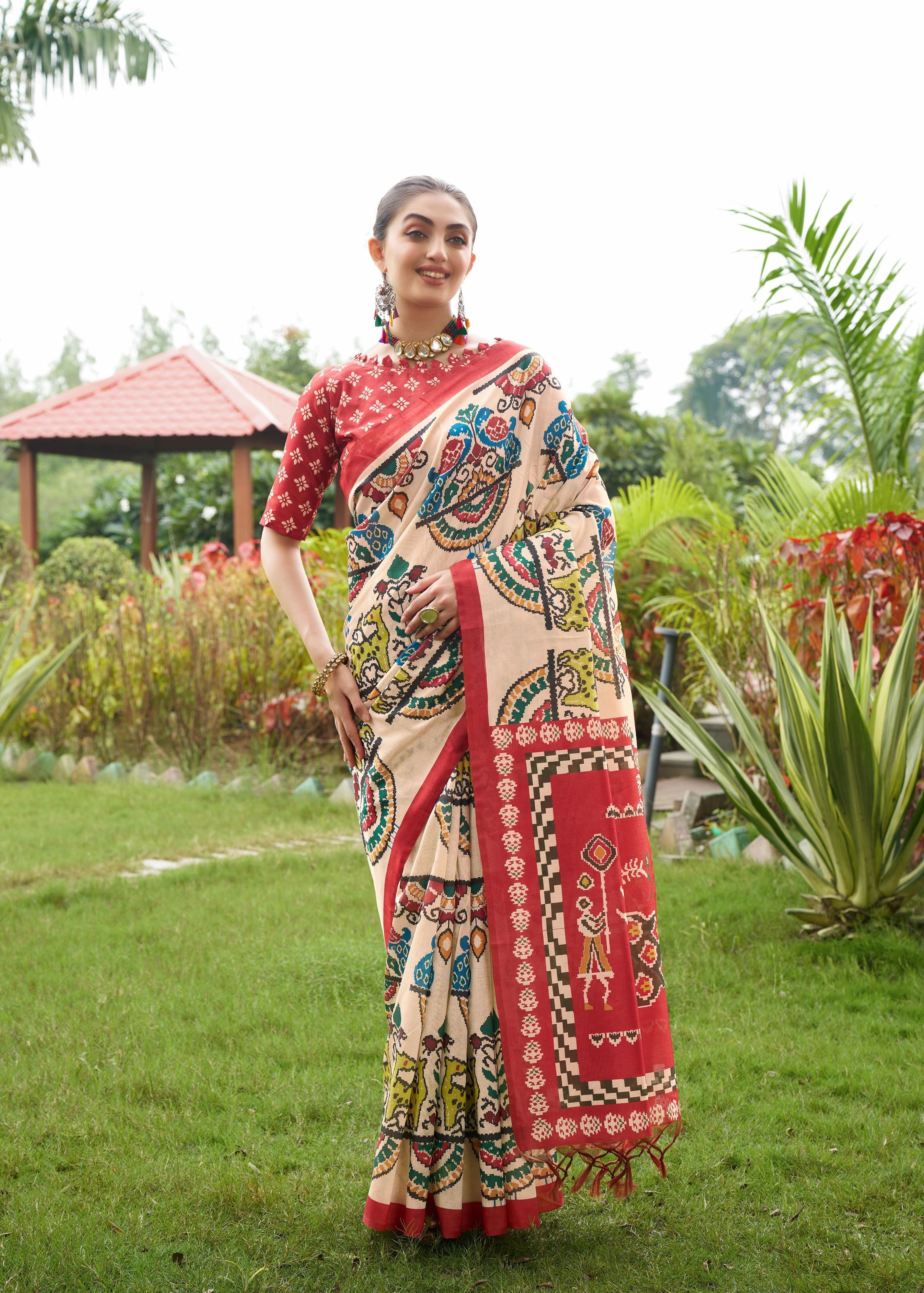 Step into timeless elegance with the Maroon Tussar Silk Patola Printed Saree from Aethnofit Fashions. Crafted from premium art silk, this saree showcases intricate Patola prints that celebrate traditional Indian craftsmanship. The matching maroon art silk blouse, thoughtfully printed, completes the ensemble, offering a refined and cohesive ethnic look perfect for weddings, festive occasions, and cultural events.
