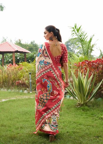 This maroon tussar silk Patola saree perfectly blends tradition, elegance, and contemporary style. Available for worldwide shipping, including USA and India, shop confidently from our online boutique and elevate your ethnic wardrobe with premium designer sarees.