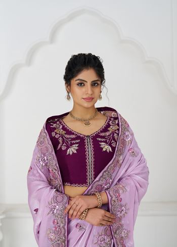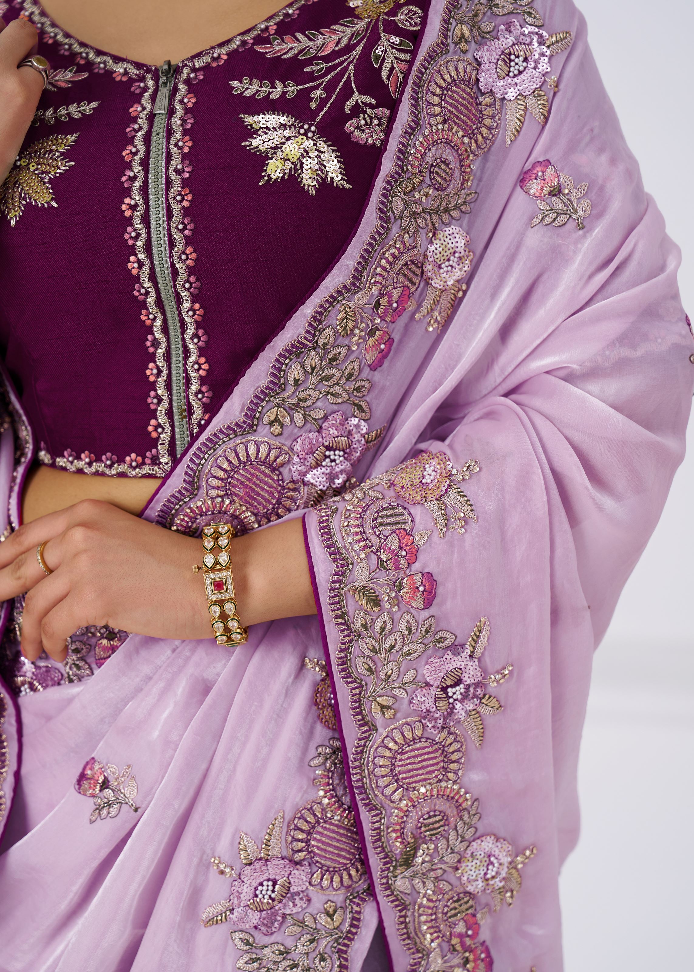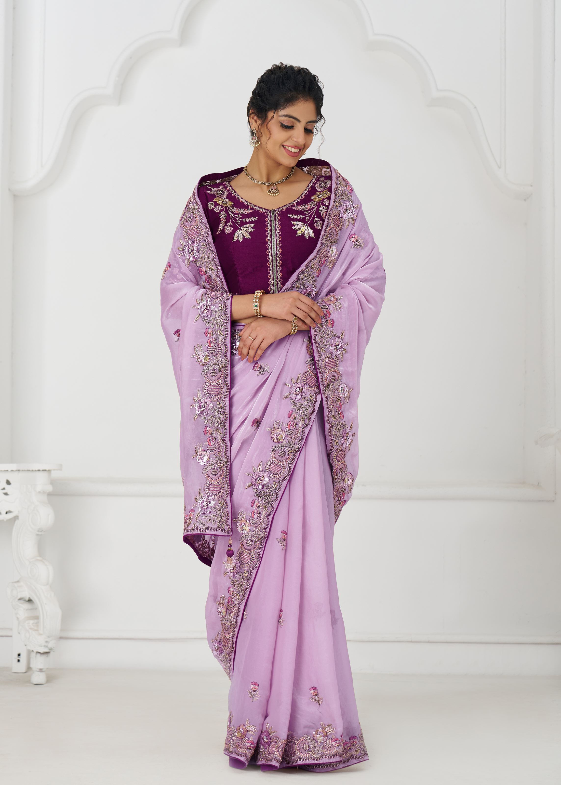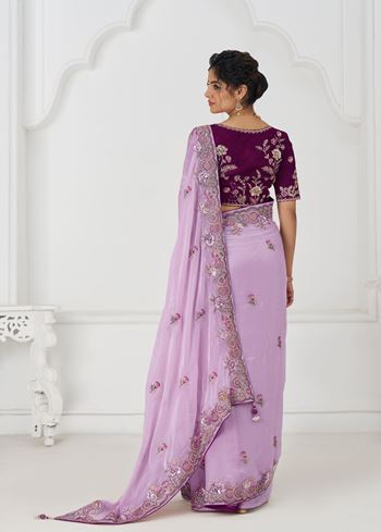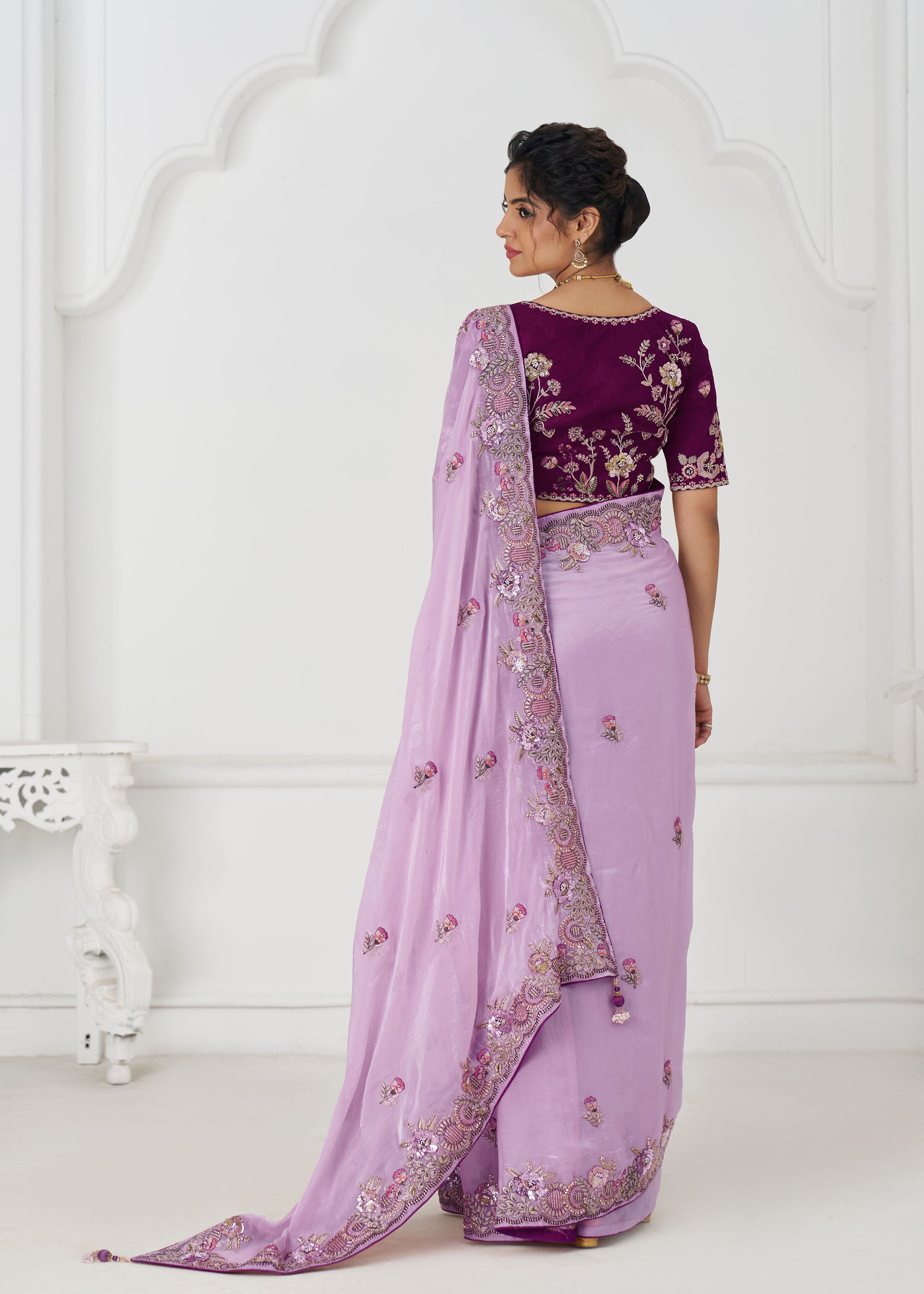 Mauve Color Saree In Zari & Sequin Work On Luxurious Fendi Fabric