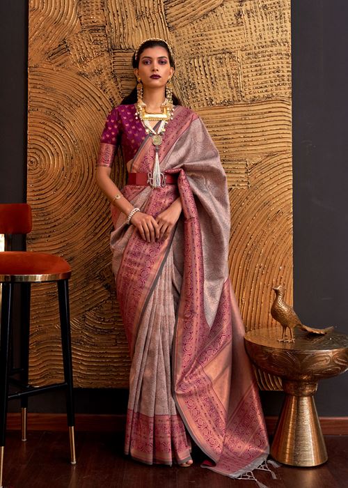 Mauve Handloom Weaving Silk Saree With Woven Work