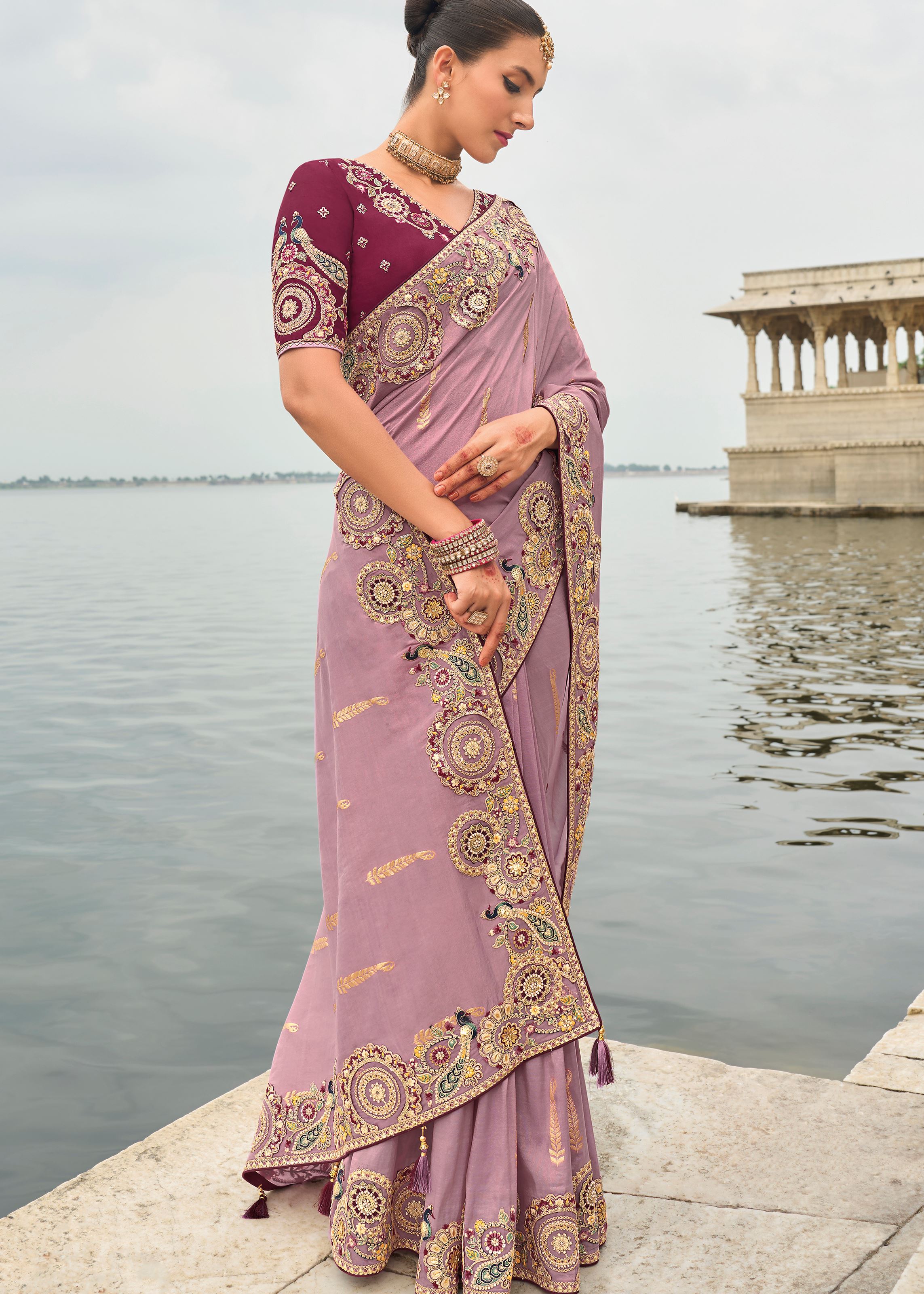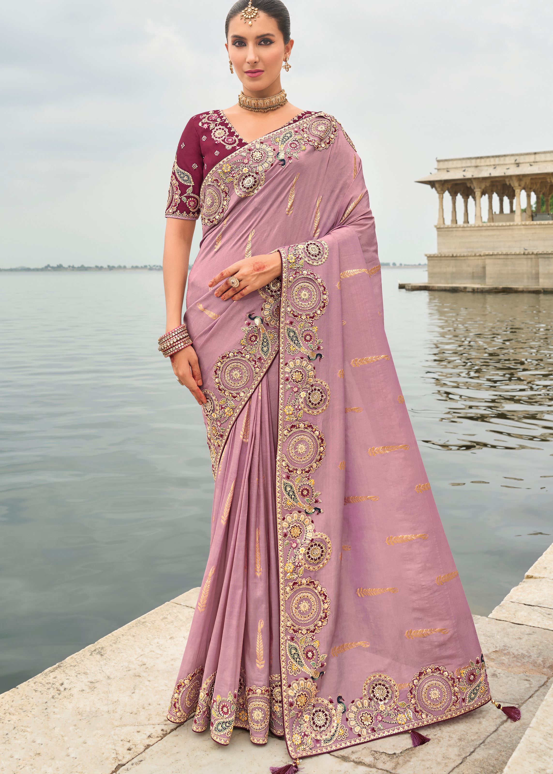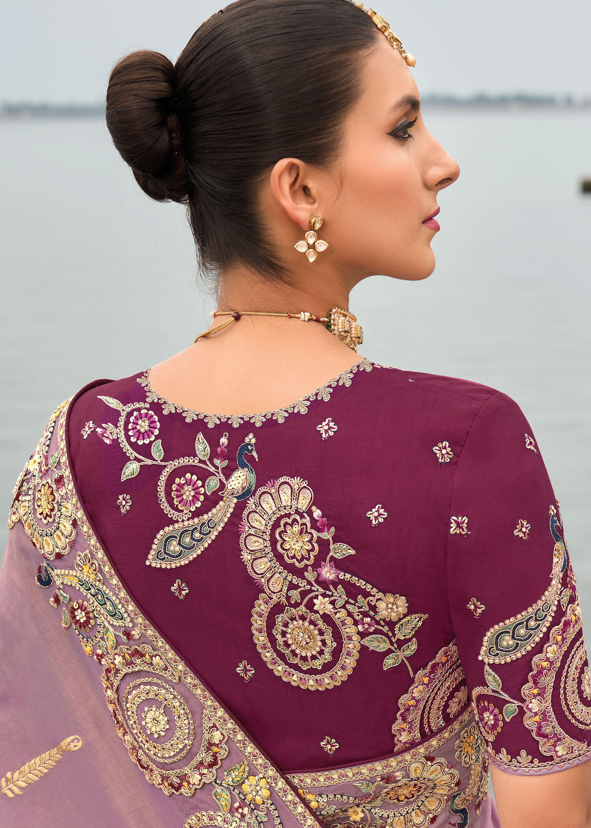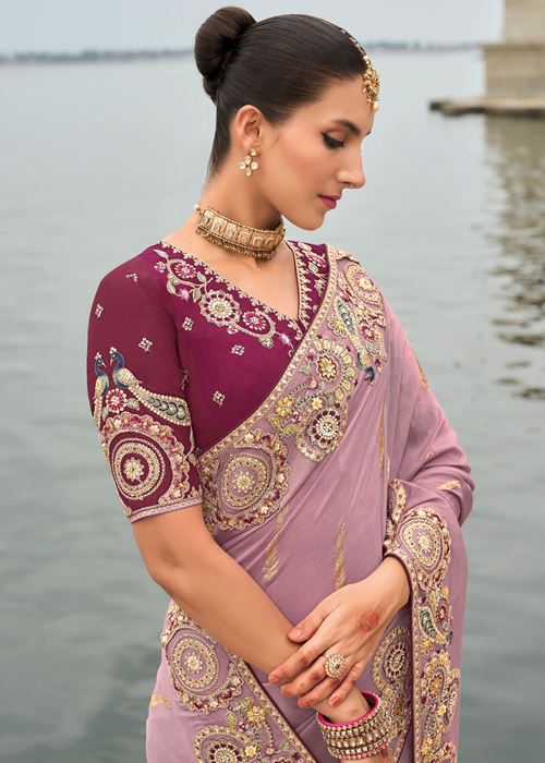 Mauve Silk Saree With Embroidery Work
