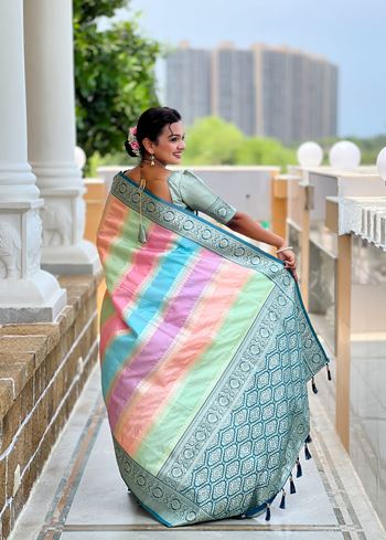 Morpich Soft Silk Woven Jacquard Designer Festive Wear Traditional Saree