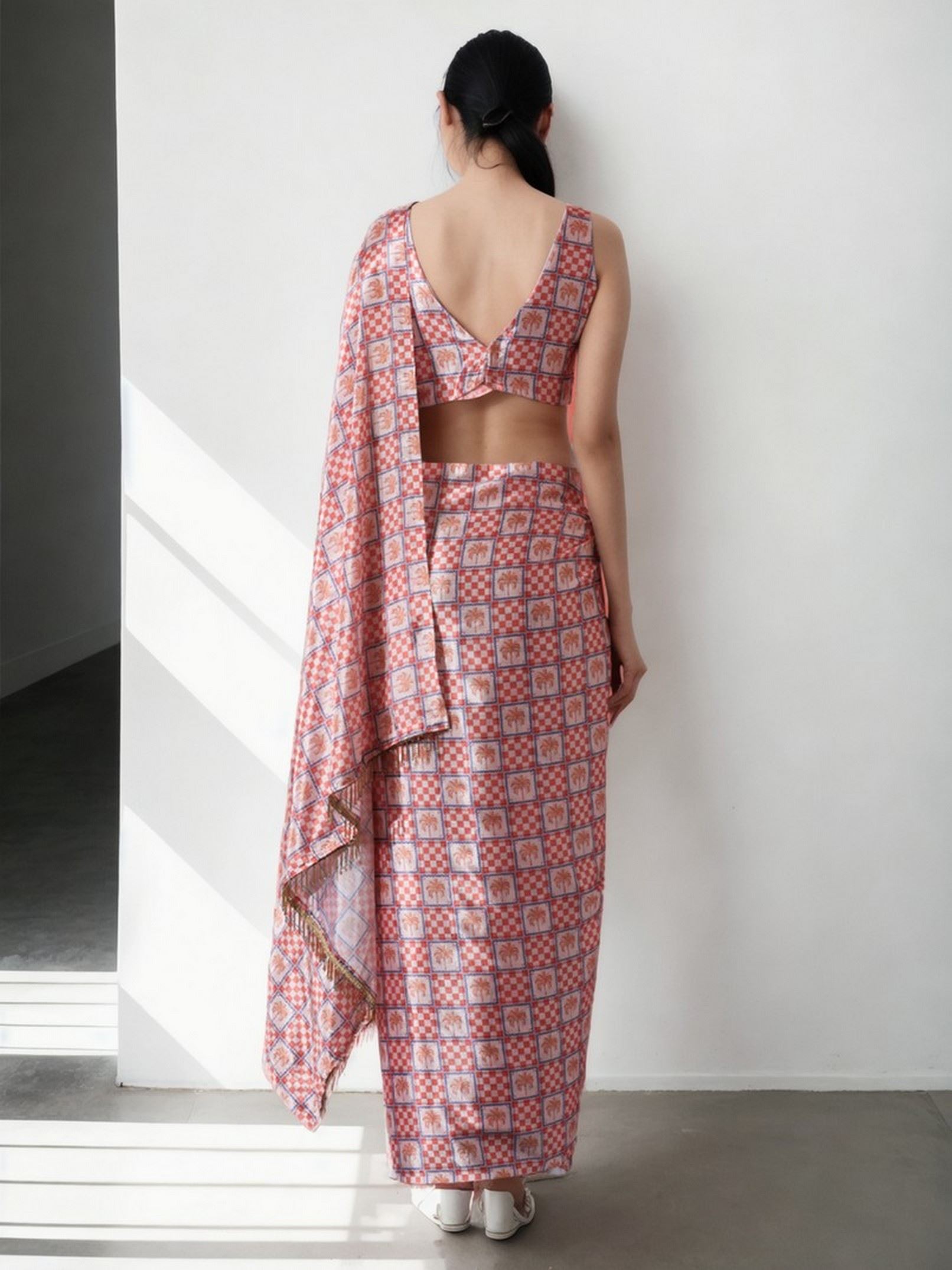 Multi Chinnon Digital Print & Lace Border Trendy Ready To Wear Saree
