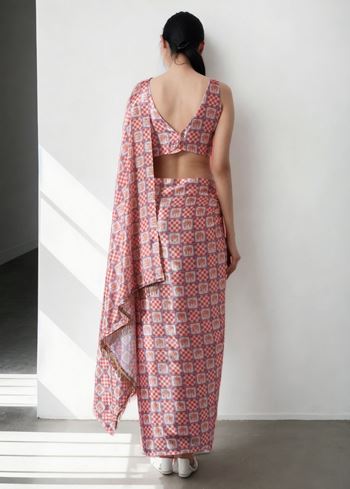 Paired with a matching multicolor art silk blouse, the outfit complements the saree’s chic appeal. The blouse can be styled in multiple ways to suit both contemporary and traditional looks. Add statement jewelry, heels, and a clutch to elevate your style further.With its digital artistry, lace accents, and hassle-free wearability, this saree is the perfect addition to any modern woman’s wardrobe who loves blending tradition with trend.