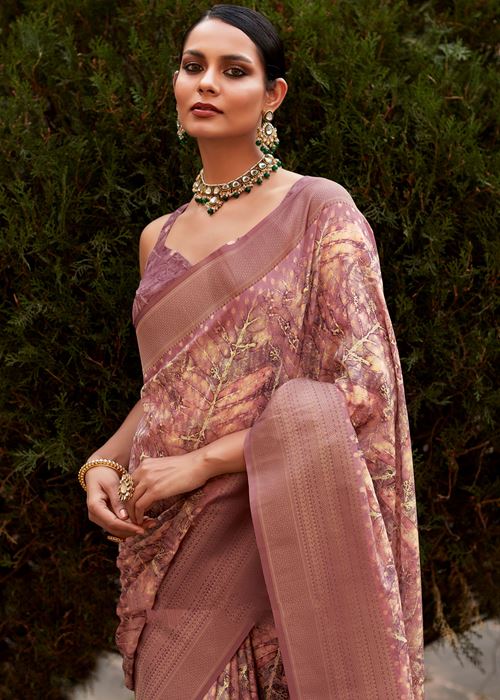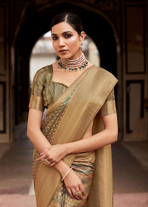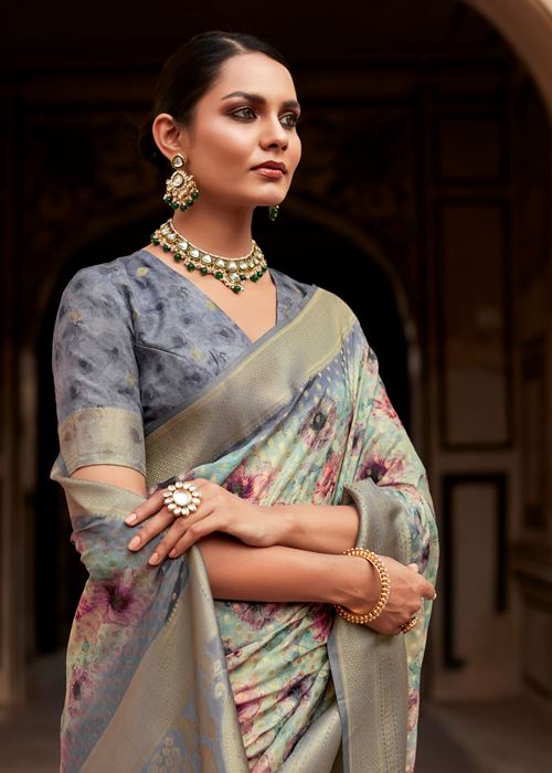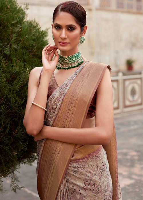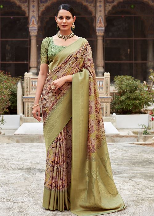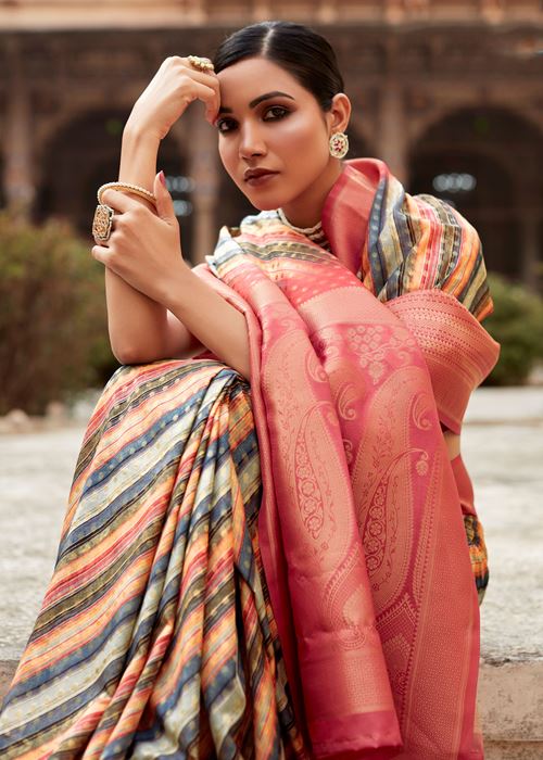 Multicolor Crepe Silk Saree With Print and Woven Work
