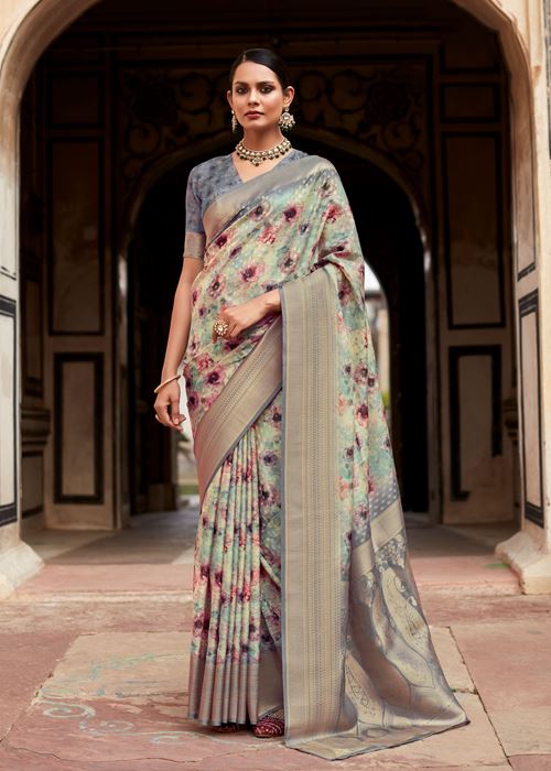 Multicolor Crepe Silk Saree With Print and Woven Work